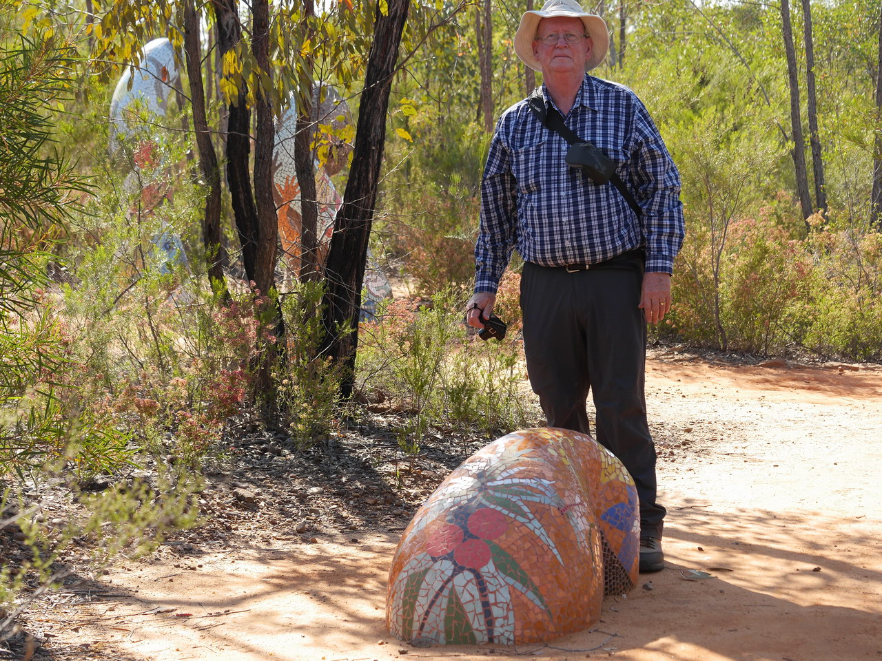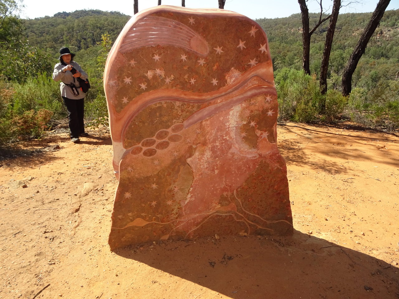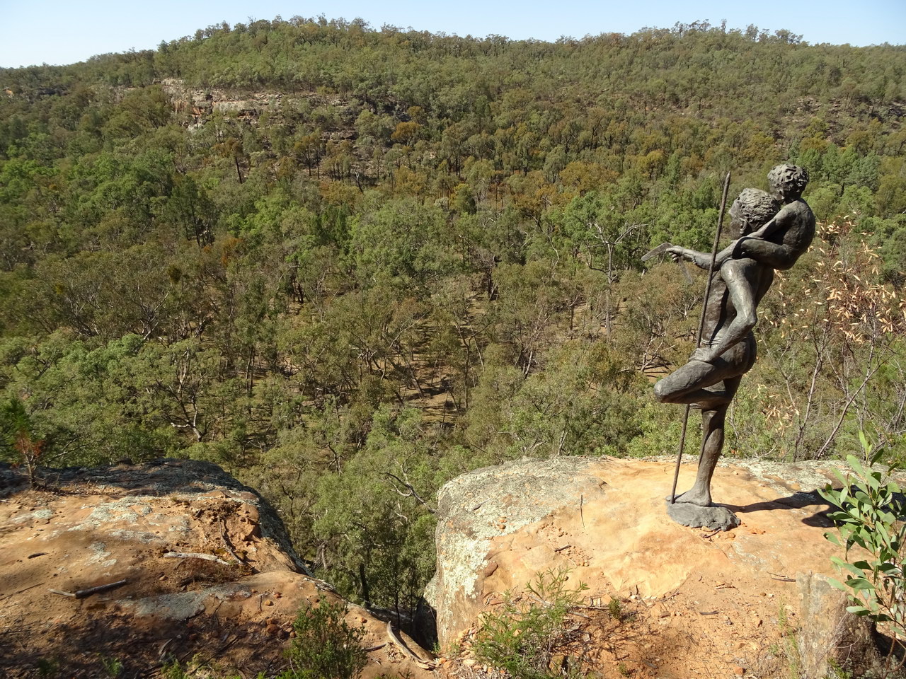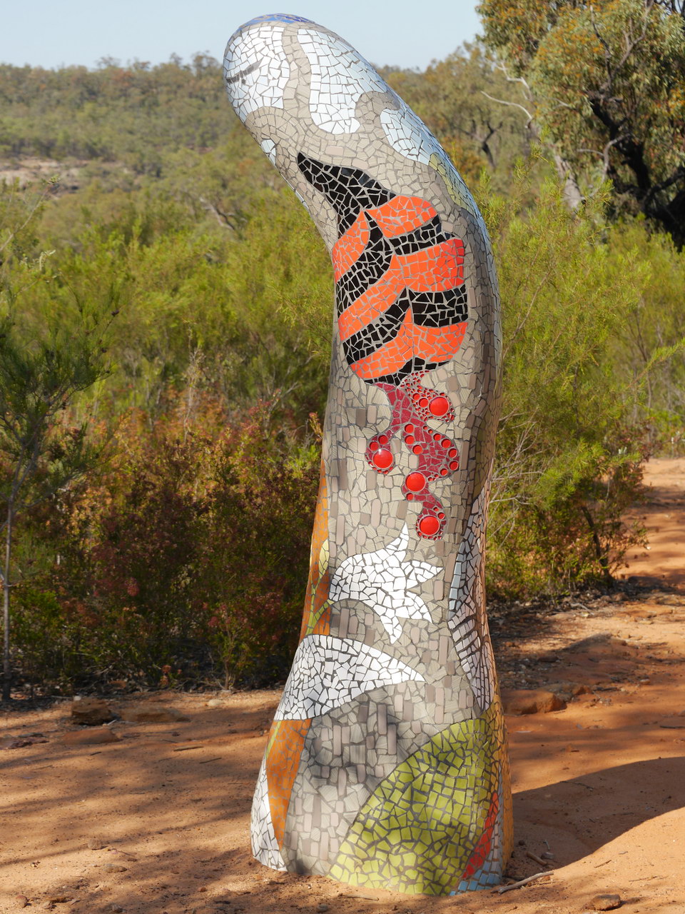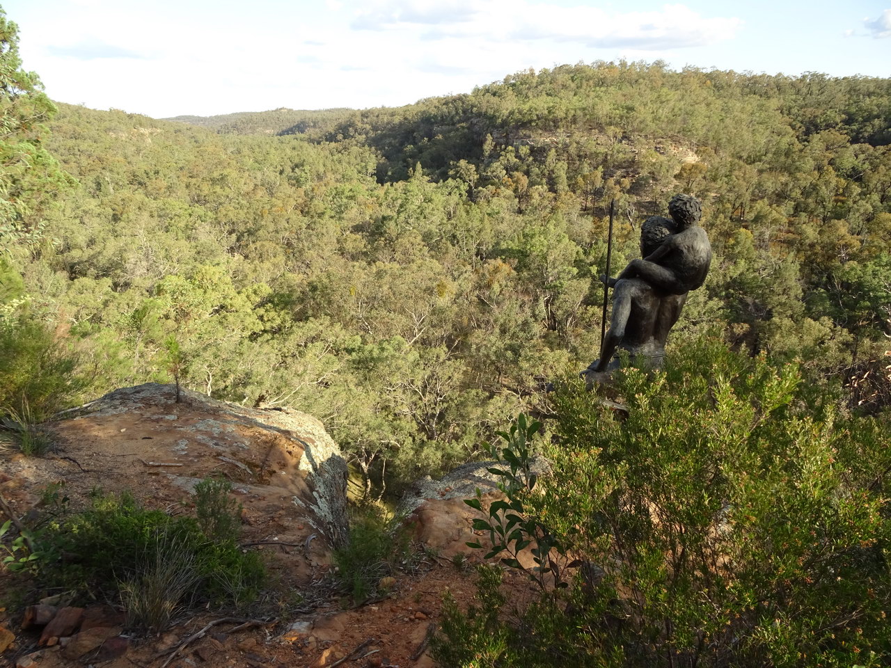 Notes: This is a must-do walk when you visit the Pilliga Scrub. Arriving late in the day we set up our caravan and decided to see what the Pilliga Sculpture walk was all about. We walked in and came across the first couple of sculpture locations and decided that it was getting a bit late to walk further and returned to our caravan. The next day we headed out early as it was going to be a very hot day. Getting to the start of the walk we decided to go via the Dandry Gorge walk first and link back in to the Pilliga Sculpture walk and do the sculptures in reverse order. Walking along the gorge floor, we soon noted that the first 2 sculptures were easily visible and gave us different perspective from the views of the night before. The link into the sculpture walk was seamless and before we realized it we were on top of the last sculpture collection. We headed back along the track to the start photographing and reflecting on the sculptures as we went. |