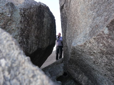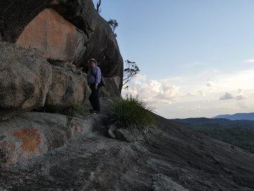 Notes:  We were back to see if an orchid we found on our last visit had flowered; we were hoping it did. At the time we have not found it in Queensland. So, after setting up camp, rather late in the day, we headed off to find the start of the Castle Rock. Along this walk is where we found the orchid growing. In a grassed area near the Shower block we found a mob of Kangaroo's feeding. After a few photos we moved on and found the start of the Castle Rock walk. The orchid in question was soon found and to our delight it was in full bloom, a magnificent specimen. Lots of photos later we again moved up along the track to see if others had developed during our absence. None were found but we did find a curiosity, a ants nest from which winged ants were emerging. At this stage we thought we would actually complete the Castle Rock walk so again we headed off, uphill along the track. The track lead us through large boulder strewn slopes and a couple of times we inched our way through rock tunnels. Nearing the end of the walk the rock face became quite a slope and as it was getting dark we stopped short of the top so we could make it home in the light. Fortunately or perhaps unfortunately on the way down we saw another orchid, this time new to us as well. So we stopped and to loads of photos before agreeing that it was to dark to photograph more. We got back to our caravan late in twilight. The next day we headed off down the track to the start of the southern walks as we had chosen to do the "Junction "walk and retracing our steps somewhat also walk to the Granite arch and loop back to our camper before heading off to somewhere else. The Junction walk is quite flat as you generally follow the Bald Rock Creek to where it merges with the Ramsay Creel at which point the track ends and you must retrace your steps back again. We were lucky to see some nice beard orchids along this path. Backtracking we came across the track to the Granite Arch which we of course took. During the next section we found some leek orchids nicely in bloom and yes we took lots of photos as this was again a new orchid to us. The Granite Arch is a interesting jumble of rocks which form an arch through which the walk goes. This was our return point and we back again till we found the track to the day area and took it and walked back to the caravan. After packing up we left for new adventures.  |