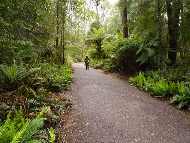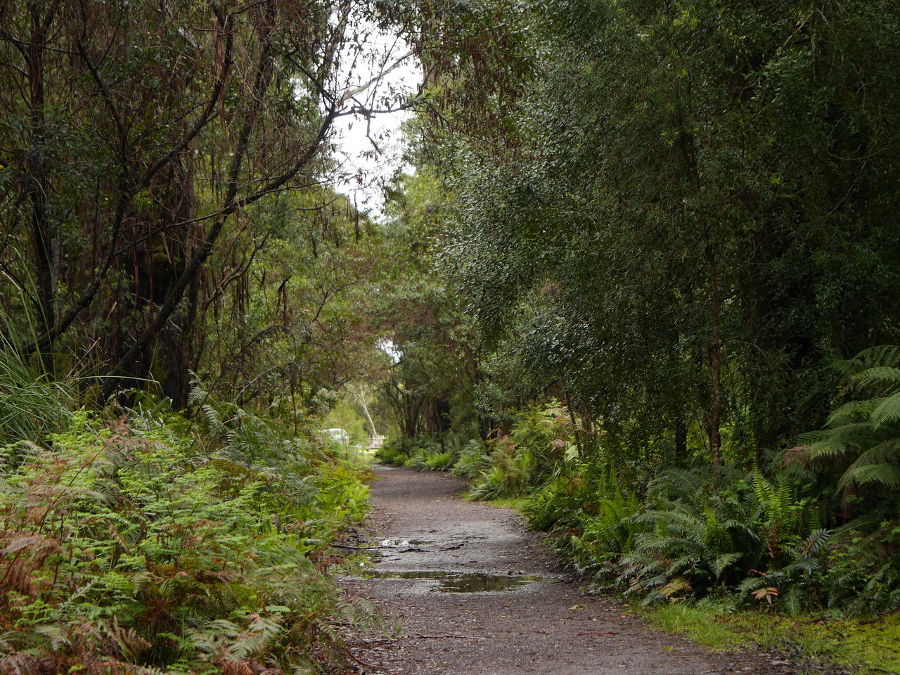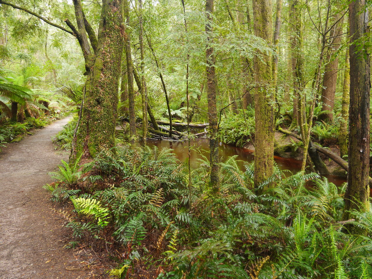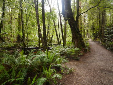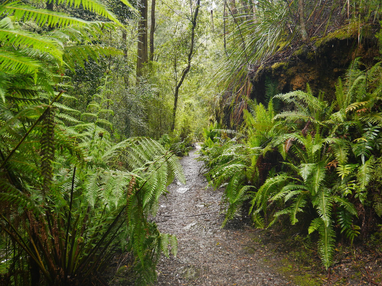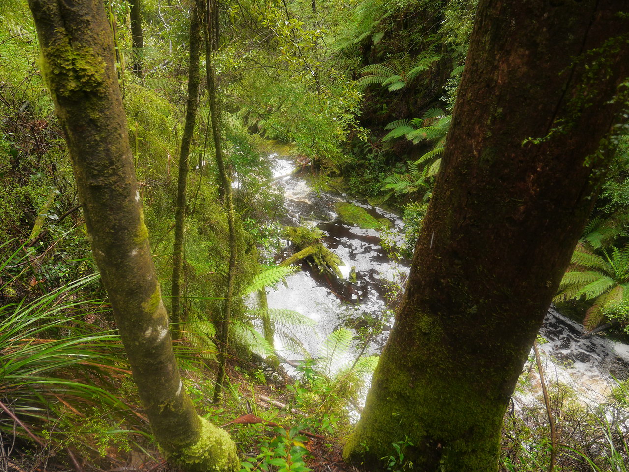 | It was an overcast day, with showers coming and going. But we were here so we may as well go for a walk. The car park was great if you didn't have a caravan in tow, so we had to park outside and walk a short distance to the gate. The facilities looked good and the usual sign denoted the start of the walk. The path was well made and flat with boardwalks in the wet areas. The boardwalks even had faux grass on them perhaps for safety and certainly for aesthetics. There were quite a few signs denoting the various history aspects and plant species. The falls themselves were roaring with mist blanketing the area making getting a good photograph near impossible due to water on the lens. As usual you retrace your steps back to the start. This time we noticed an orchid on the way. How did we miss it going in! Easily I would say. |
