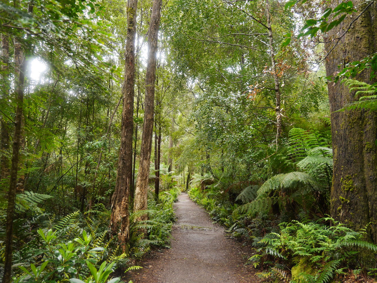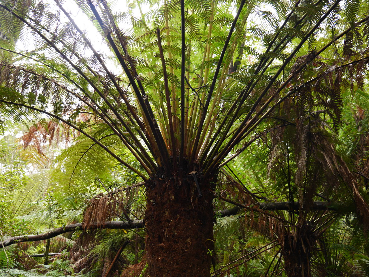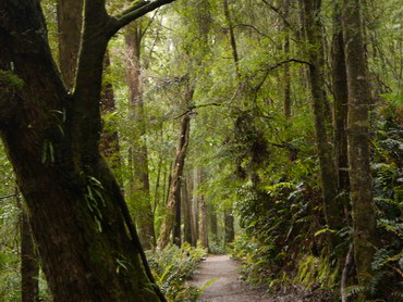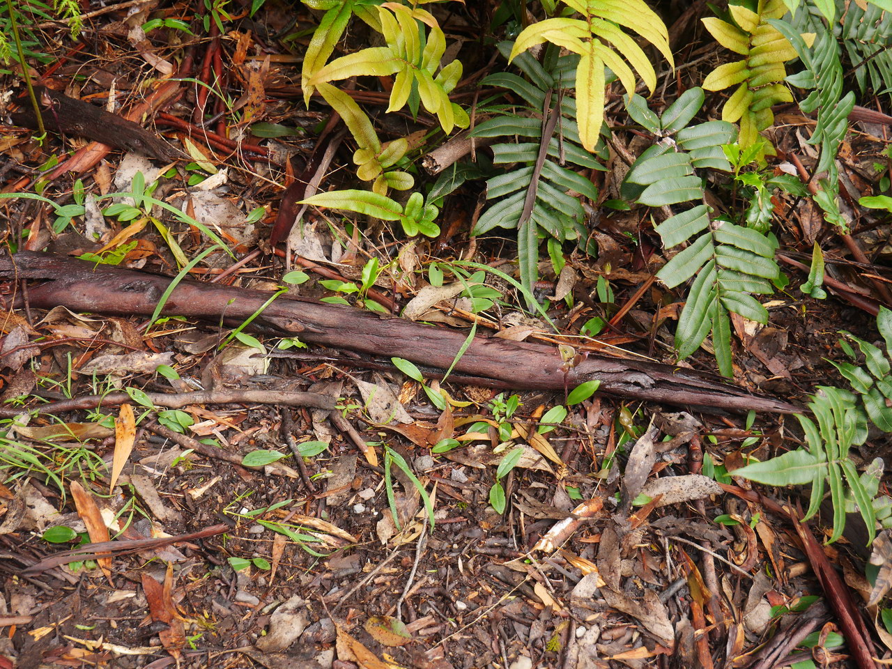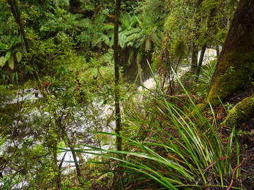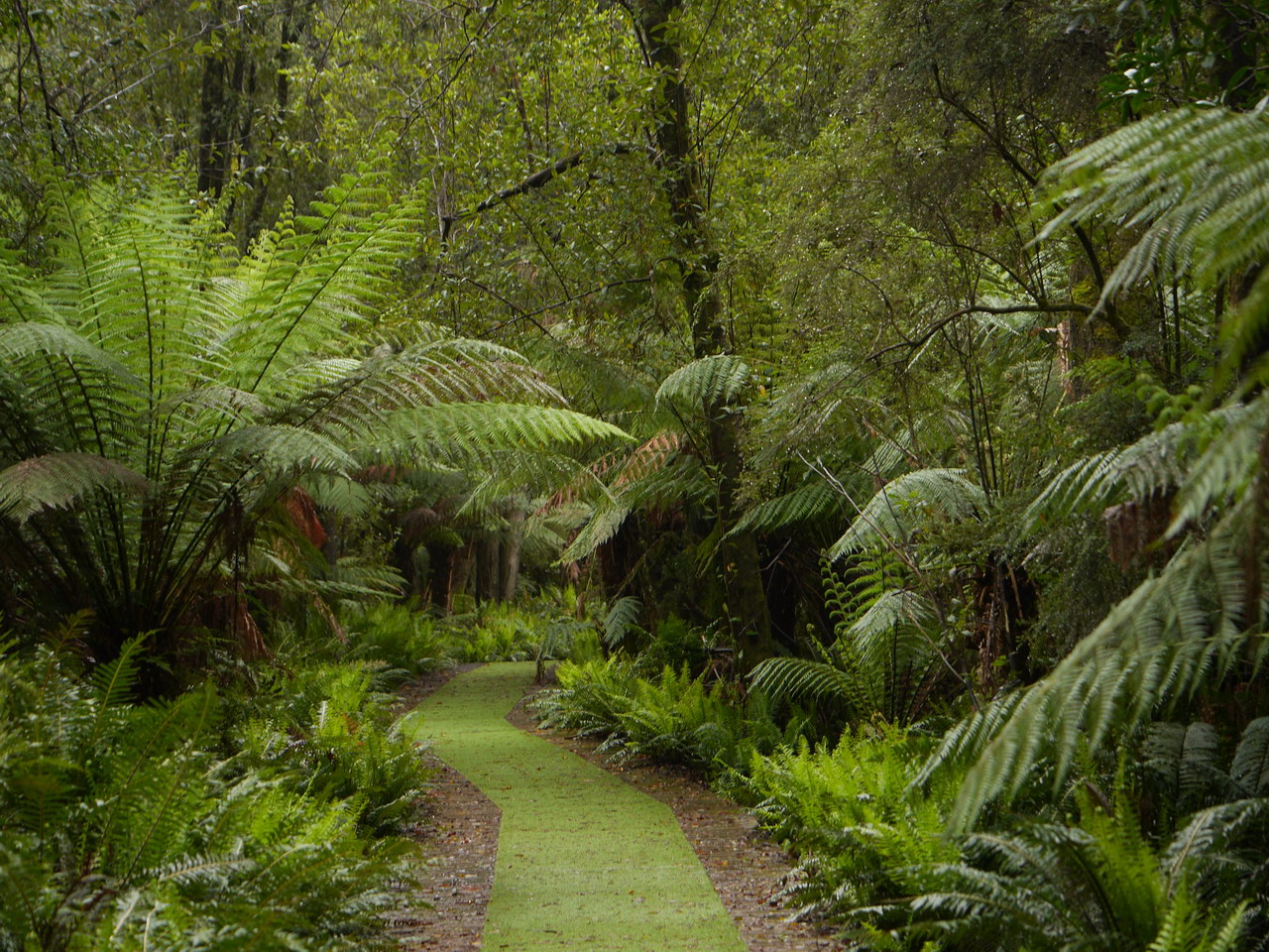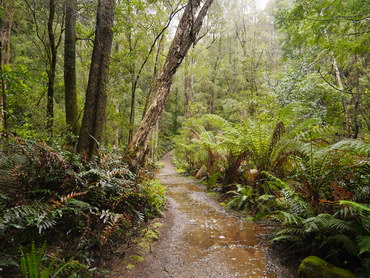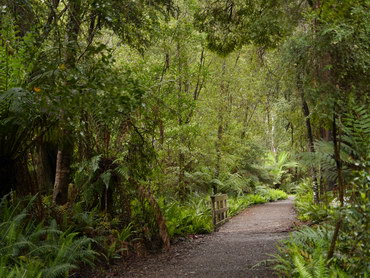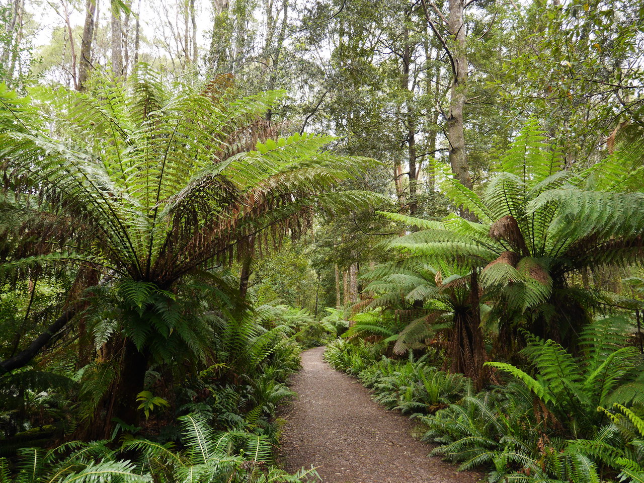 | It was an overcast day, with showers coming and going. But we were here so we may as well go for a walk. The car park was great if you didn't have a caravan in tow, so we had to park outside and walk a short distance to the gate. The facilities looked good and the usual sign denoted the start of the walk. The path was well made and flat with boardwalks in the wet areas. The boardwalks even had faux grass on them perhaps for safety and certainly for aesthetics. There were quite a few signs denoting the various history aspects and plant species. The falls themselves were roaring with mist blanketing the area making getting a good photograph near impossible due to water on the lens. As usual you retrace your steps back to the start. This time we noticed an orchid on the way. How did we miss it going in! Easily I would say. |