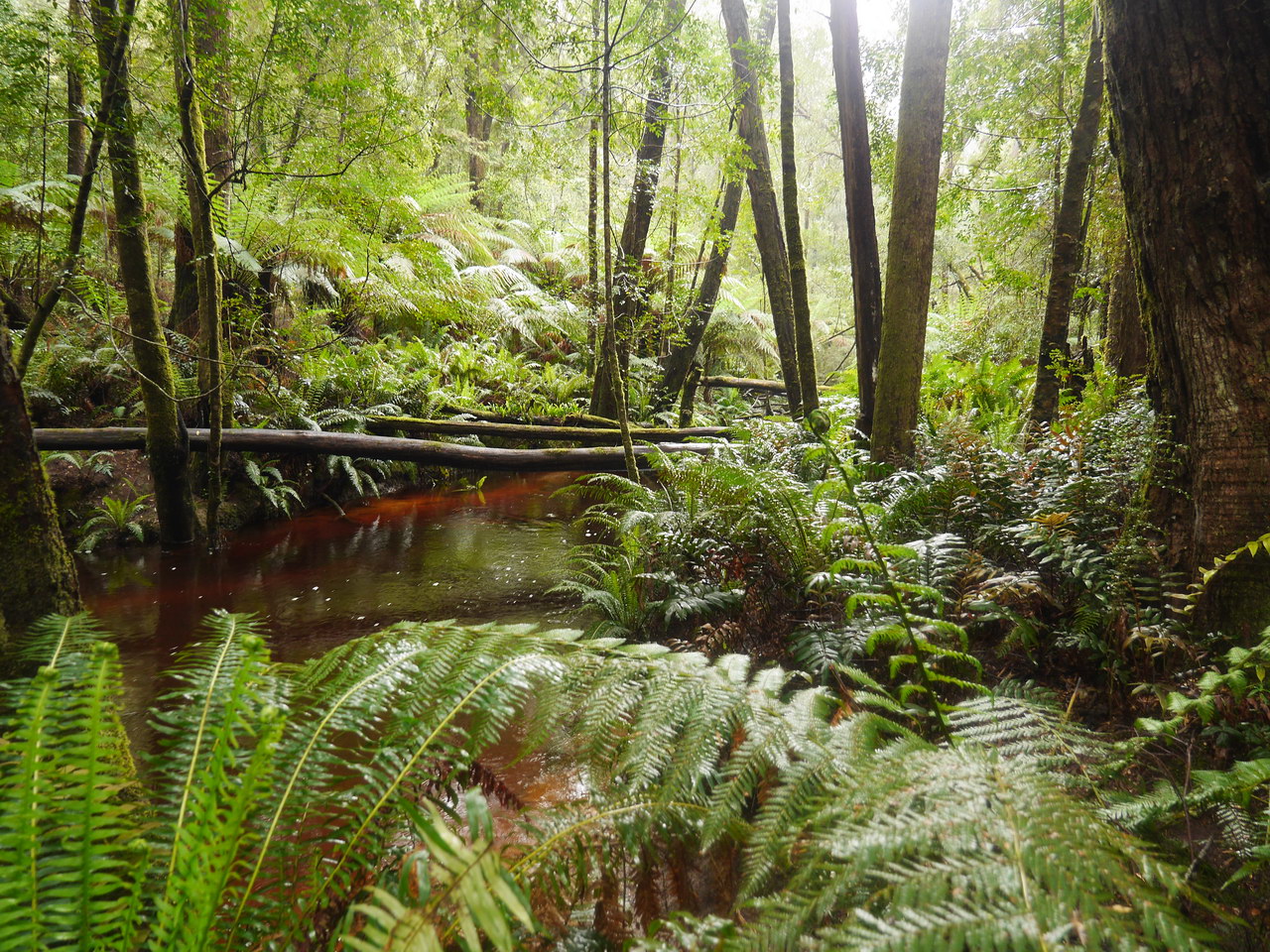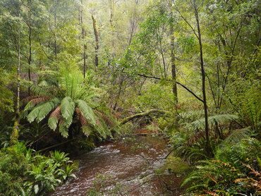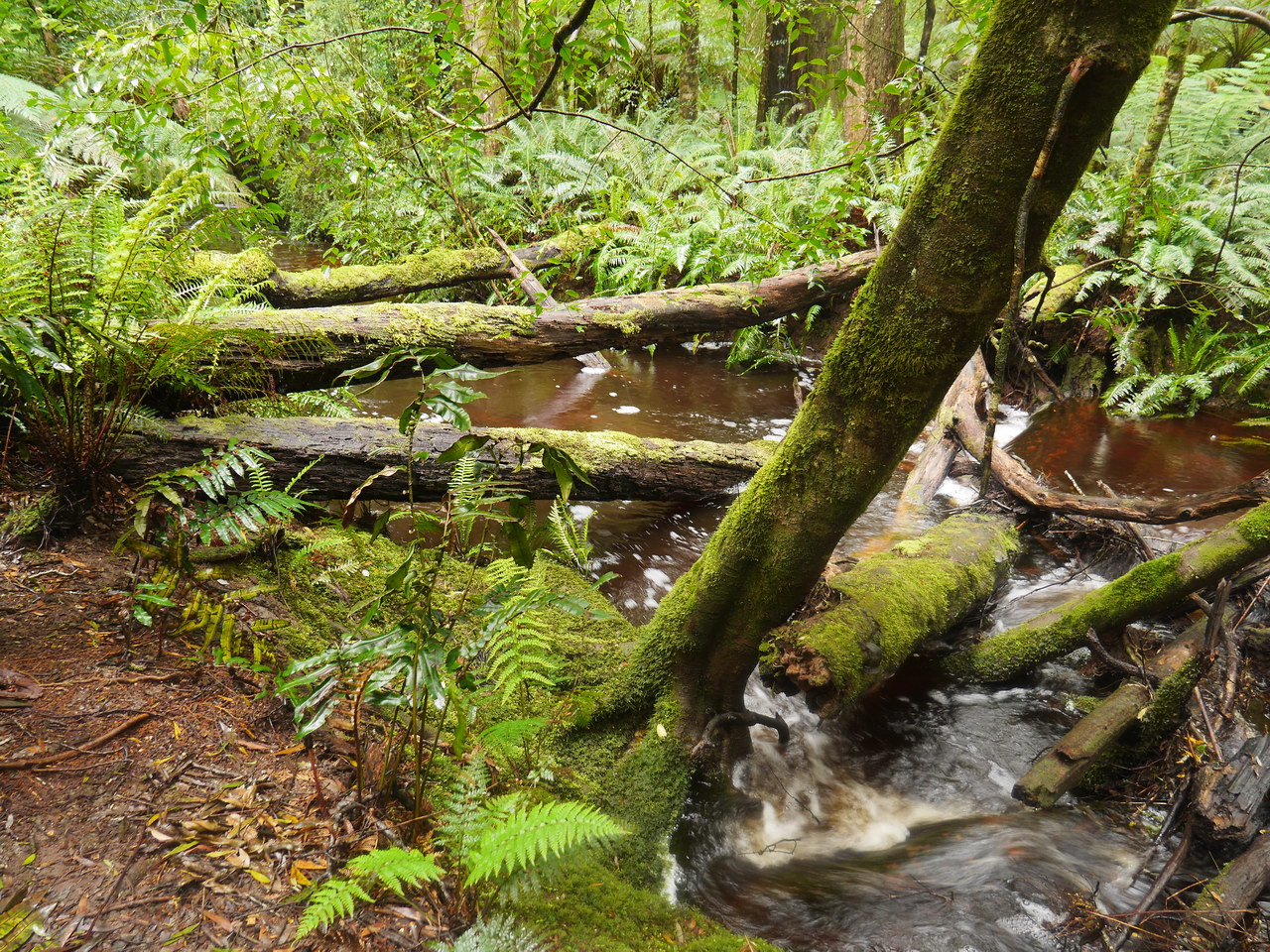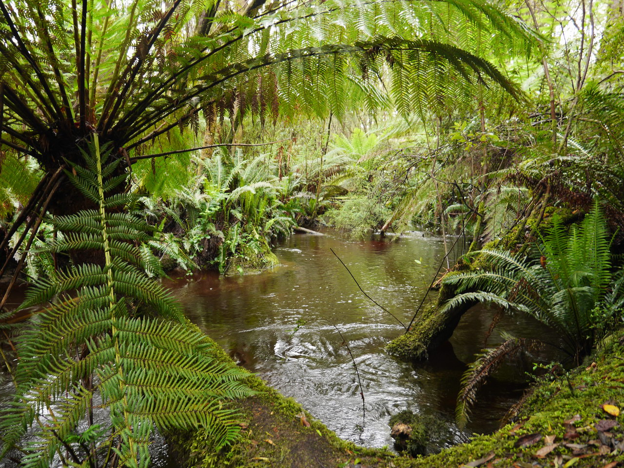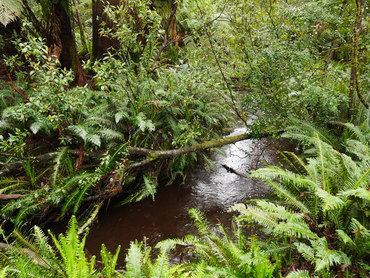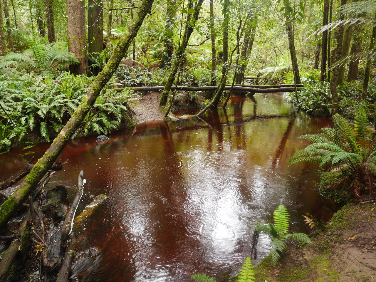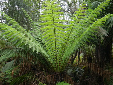 | It was an overcast day, with showers coming and going. But we were here so we may as well go for a walk. The car park was great if you didn't have a caravan in tow, so we had to park outside and walk a short distance to the gate. The facilities looked good and the usual sign denoted the start of the walk. The path was well made and flat with boardwalks in the wet areas. The boardwalks even had faux grass on them perhaps for safety and certainly for aesthetics. There were quite a few signs denoting the various history aspects and plant species. The falls themselves were roaring with mist blanketing the area making getting a good photograph near impossible due to water on the lens. As usual you retrace your steps back to the start. This time we noticed an orchid on the way. How did we miss it going in! Easily I would say. |
