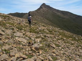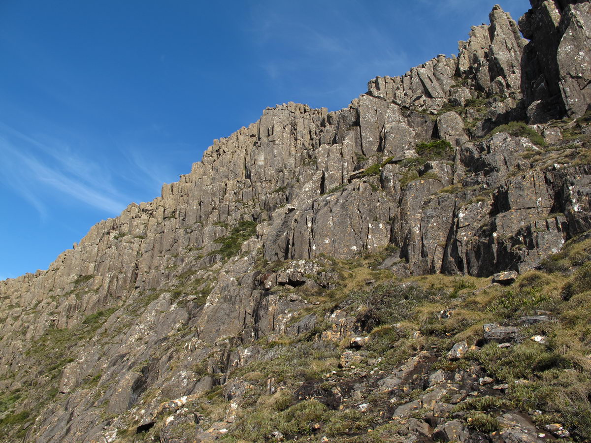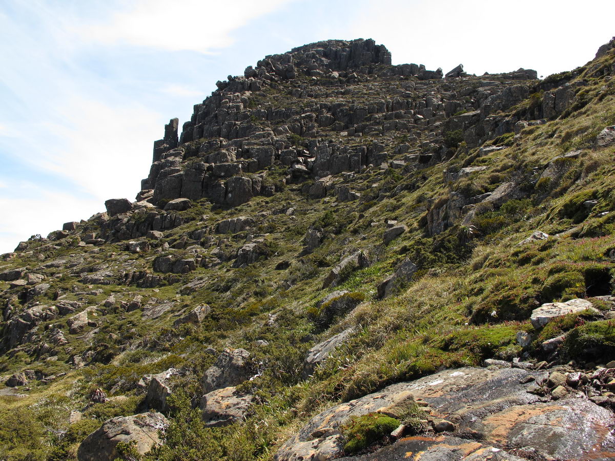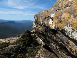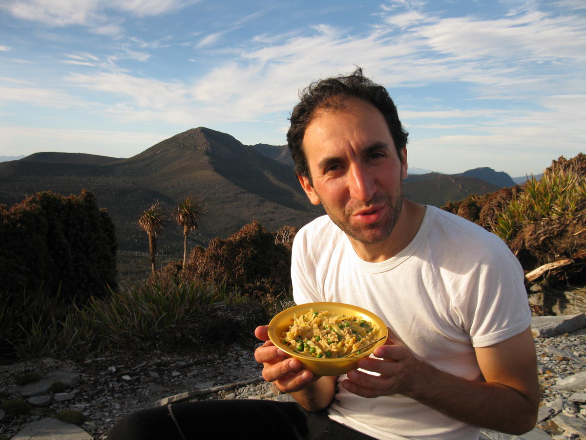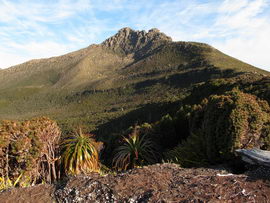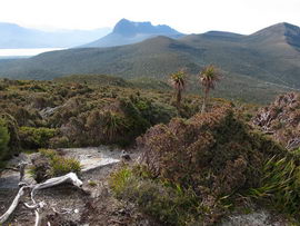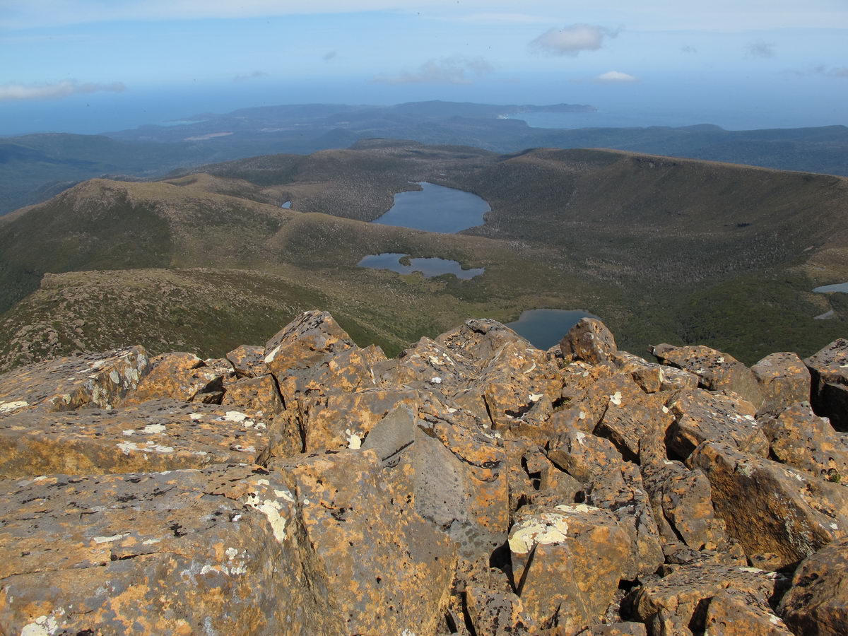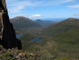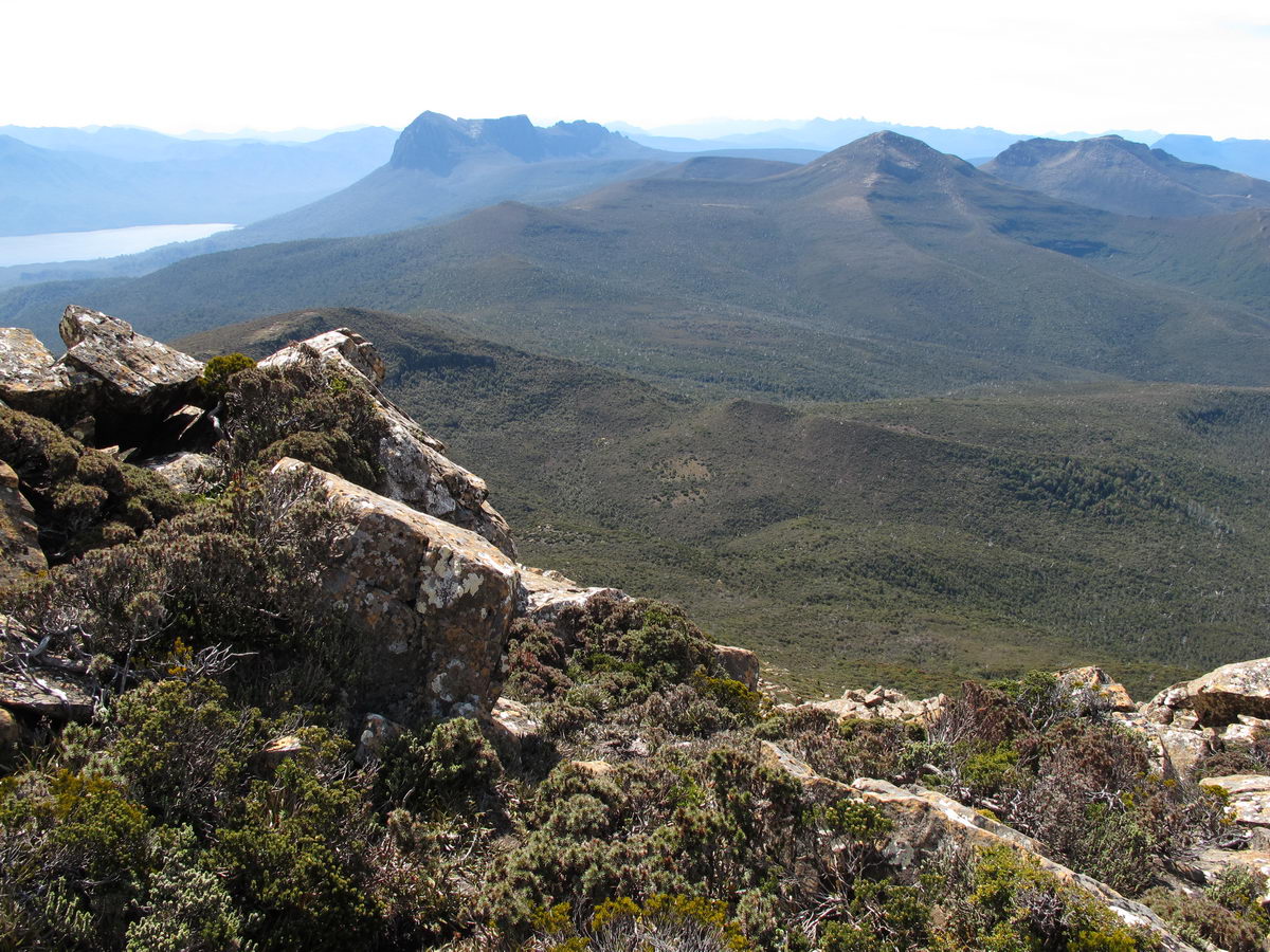 Susan's Diary: Hill One and Hill Two Saddle to Pandani Knob Tuesday 15 December 8:00 – 17:00 We got up at 6am for an 8am start. The wind was blowing quite strongly making for a cold morning, so we began in fleeces and beanies. We were hoping to make it to Leaning Tea Tree Saddle today, although not really expecting to, in order to give us a shot of making Precipitous Bluff before the expected rain for Thursday. The walk from Hill Two to Pigsty Ponds was fairly easy with spectacular views of everything – mountains and ocean. We arrived at Pigsty Ponds after 1.5 hours and ran into the son from the day before. As it turns out he re-injured himself the night before when they pushed to make camp at Pigsty Ponds. We had seen his and another tent from Hill Four and incredibly the owner of the other tent knew the son and told him of his attempt at Precipitous Bluff where he got lost for 1.5 hours in the vicinity of Leaning Tea Tree Saddle. He said he climbed a tree to get a bearing to follow back onto the ridge and then decided against continuing on. He warned us not to leave anything on the outside of our packs and to be very careful with the track in the coming days. From Pigsty Ponds there was a tiring climb up past an impressive stone arrow marking the Mt La Peruse turn-off. The track then continued onto Maxwell Ridge. Past this point the track climbs steadily to a rocky ridge, with excellent views over the landscape traversed the day before. On the ridge top we followed erect cairns for easy spectacular walking until we reached the ridge that descended onto King Billy Saddle. The ridge gave more excellent views of the area, in particular Ooze Lake and Pindars Peak, which for the first time was in complete view (the day before you just manage to see its peak). The descent was tiring through mud and narrow corrals. The day was heating up, in the 30s, and from King Billy Saddle to Ooze Lake we had to bash through reasonably dense scrub which had the advantage of providing respite from the sun. At Ooze Lake we stopped for lunch. Given the time was 13:40 when we finished, we didn’t think we would make it to Leaning Tea Tree Saddle so we had to stock up on water again (no reliable water before then), which was unfortunate. I found carrying a very heavy pack very tiring in the sun. Straight after Ooze Lake there is a steady gradual climb up to Pindars Peak, which starts off on the west side and then crosses over to the east side of the range which is sheltered from any potential breezes. This made the climb very long and unpleasant for me in the scorching heat. With much relief we reached the Pindars Peak ascent turn-off after a slow progress 1:20 hours. Given the excellent weather and with no pack, I found the energy to join Luca on the climb up to the top – and it was worth it as the views of the South Coast were excellent. The beaches on the South Coast track looked very inviting, and contrasted starkly to the rather dry and hot ranges we were on. Much “talk” was had about abandoning the ‘loop’ and cutting across to the coast – mostly by Luca, and only in jest. Tassie bush bashing is best left alone! The views from Pindars Peak spanned 360 degrees: also including the Arthurs, Mt Anne, Precipitous Bluff, New River Lagoon, the Southern Ranges, and more. Eventually we started descending off Pindars Peak, the heat of the day had lessened considerably by this stage, and a breeze occasionally picked up. The track stays pretty close to the cliff face on the west side until the cliffs peter out and you regain the ridge. Not long after we reached Pandani Knob we decided to call it a day. The campsite was very pretty, surrounded by sculpted scoparia, and there were some small pools of dodgy water, probably only suitable for cleaning (given they were on the track). We figured that the temperature must have been 30 degrees that day so we were a bit worried about how we would fair the next day, expected to be in the 30s again, where we would be scrub bashing for the whole day. We decided we should get a very early start and hoped there would be another cold and windy morning. The evening was glorious as we cooked outside with views of Precipitous Bluff and Federation Peak. We spoke about waiting for the sunset but given our impending early start - and fatigue - we decided to get an early night. The weather was warm and Luca was only in a T Shirt until 8pm. We even attempted to sleep with the fly open but the wind caused an annoying flapping sound, so it was closed sometime in the early hours of the morning. |