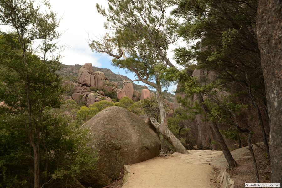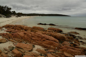 | A four day walk was planned for the beaches of the Freycinet National Park. With cloudy skies we walked the coastal track to the start of Hazards Bay, then on the beach to the southerly end where the camping area was. This was stop 1 and we camped overnight. Day 2 saw us walking south to the far end of Cooks Bay were we set up camp for the night. We re-traced our steps of Day 3 and returned to the north end of Hazards Beach and took the track to Wineglass Bay where we headed south to the camping area. On the last day we headed out via the Wineglass Bay Lookout track. |
