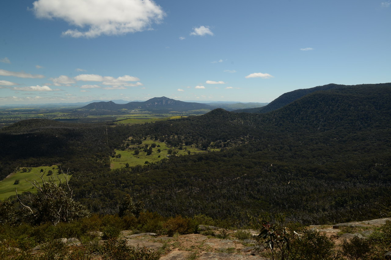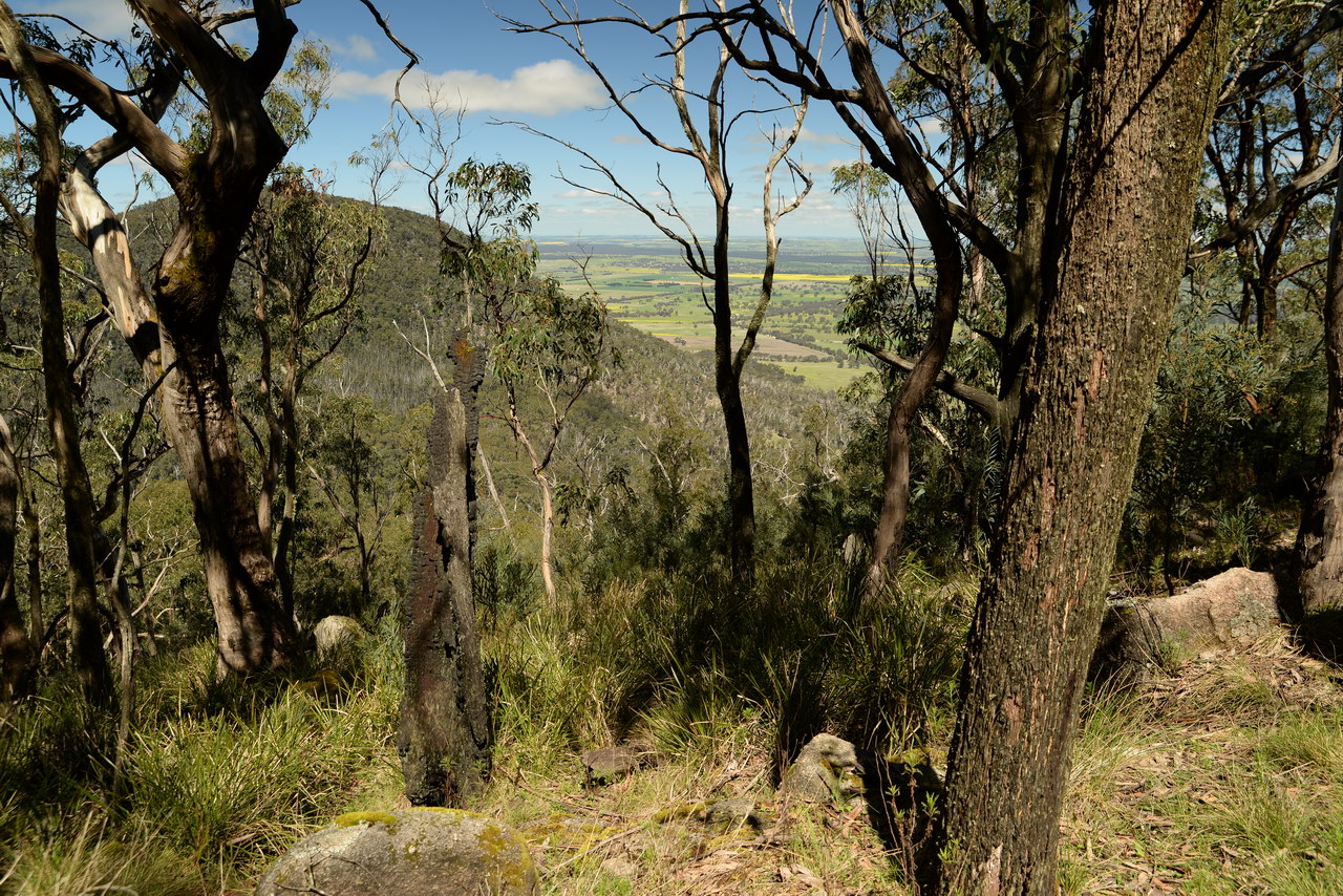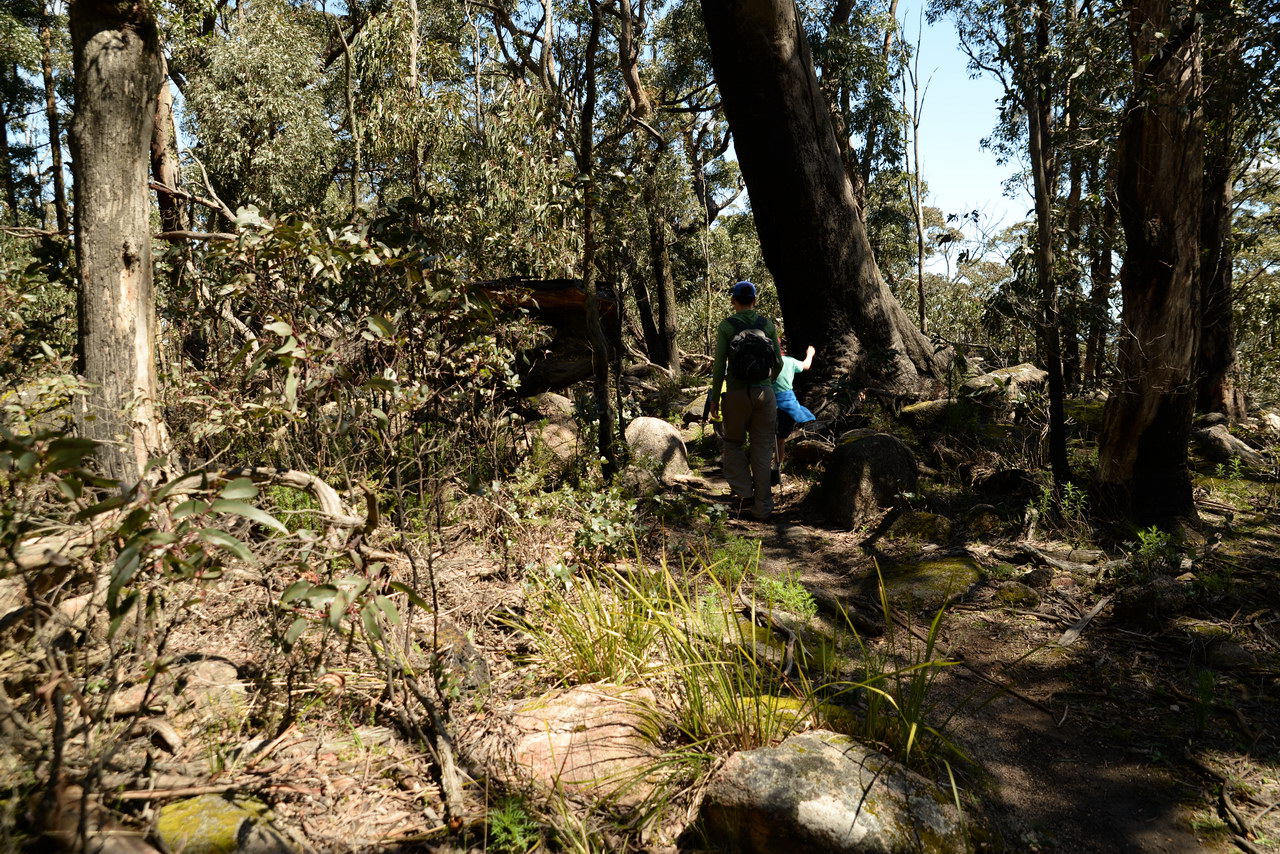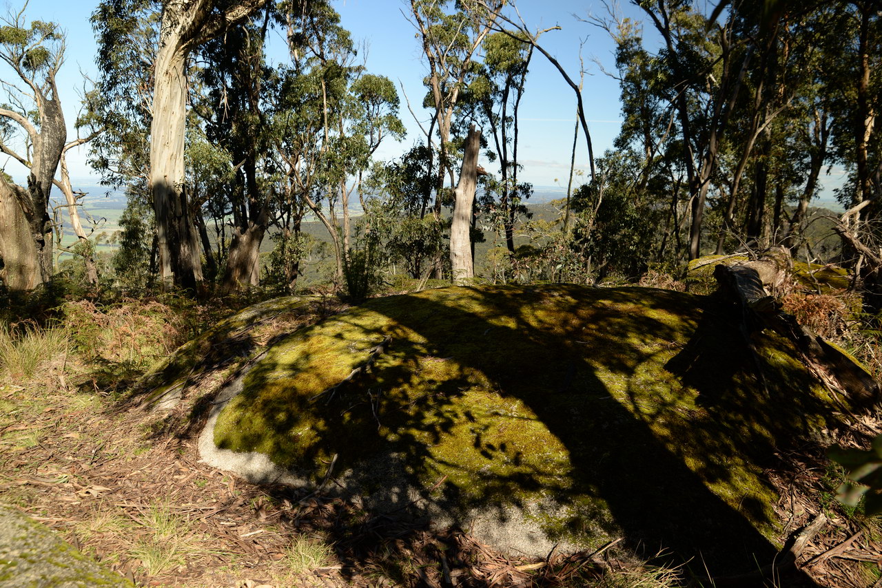 Notes:  Although this walk is classified as a Class 4 walk it is suitable for fit parents with young children. It is 20.6 km long. It starts at the Richards Campground in the Mount Buangor State Park. The walk passes through fern valleys, granite boulders and tall timber with great views of Langi Ghiran and the Grampians. The overnight camp is at the Beeripmo campground. This campground has 10 sites and fires are permitted depending on weather and local fire bans. A water tank and toilets are located at the Beeripmo camp and as this is a "Leave no trace" walk you should take out your rubbish with you.  |