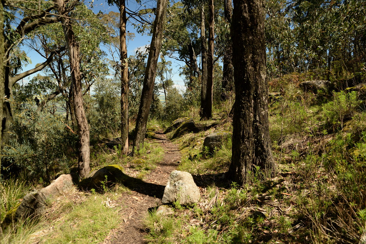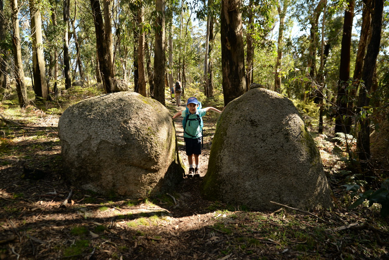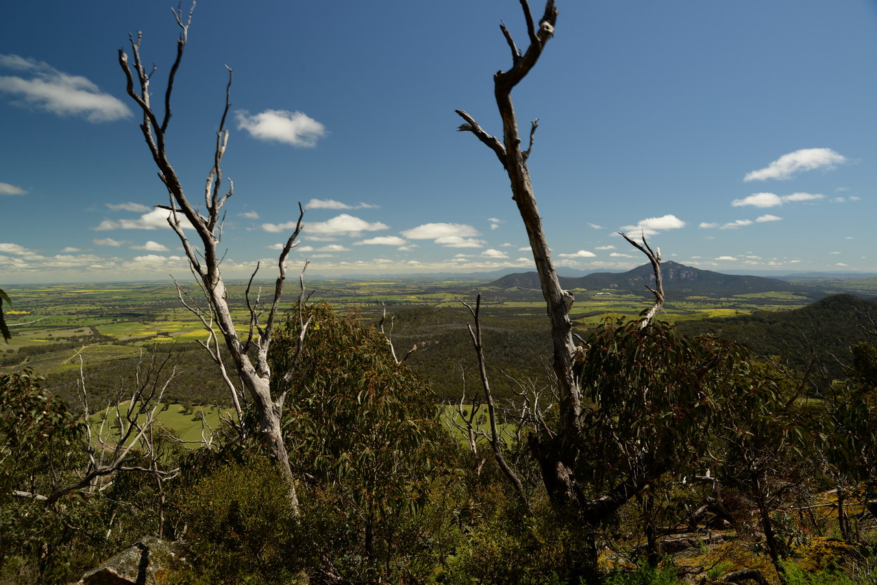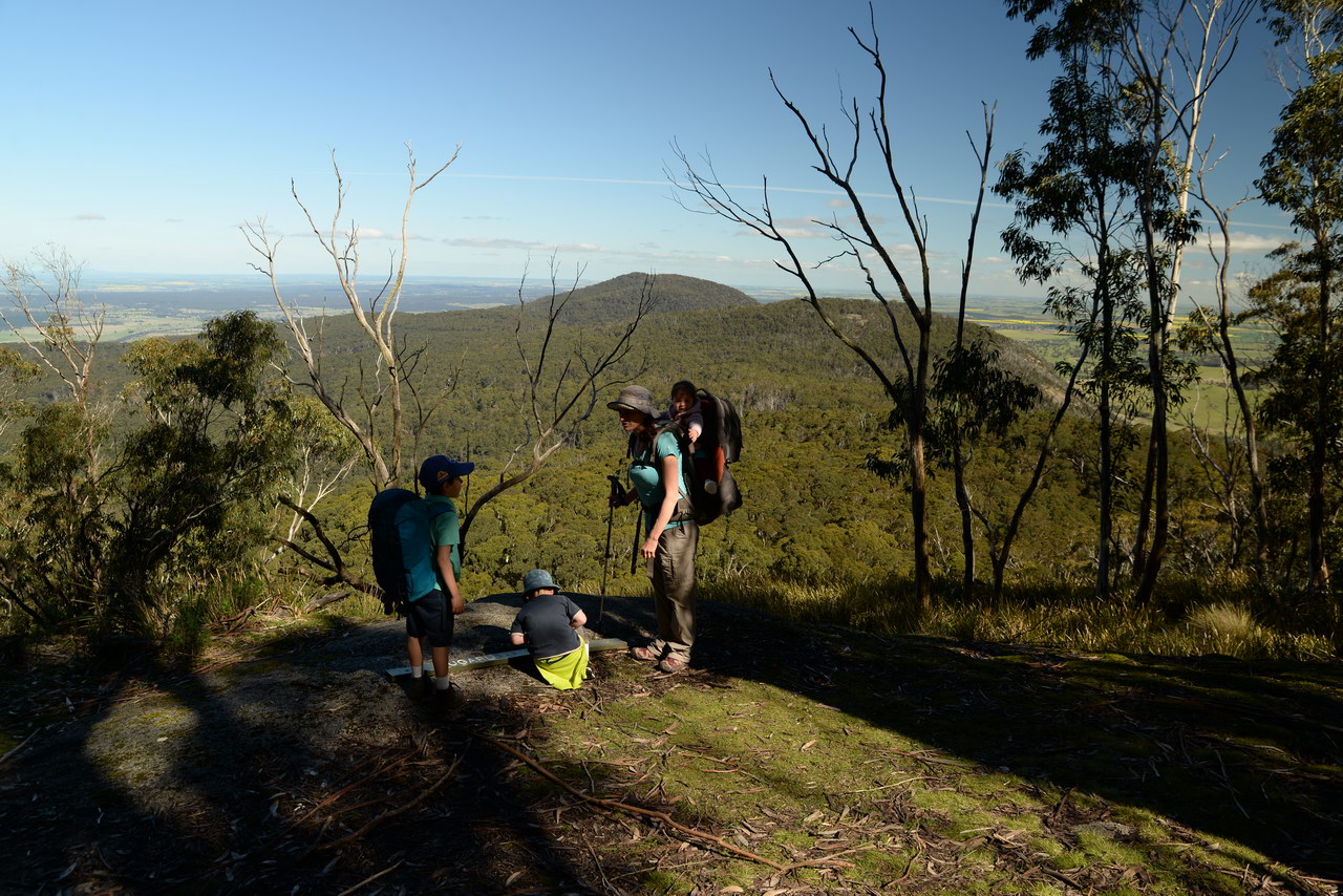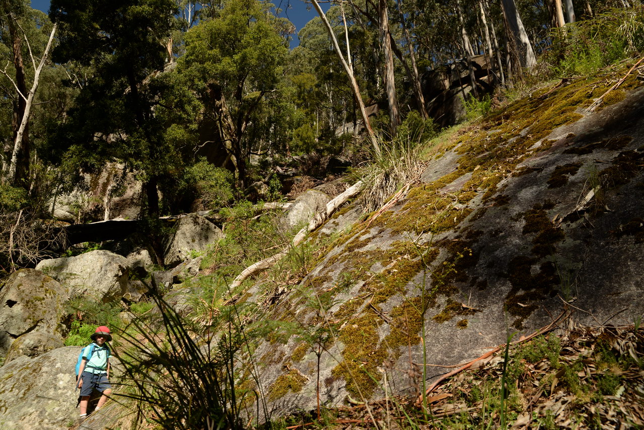 Notes:  Although this walk is classified as a Class 4 walk it is suitable for fit parents with young children. It is 20.6 km long. It starts at the Richards Campground in the Mount Buangor State Park. The walk passes through fern valleys, granite boulders and tall timber with great views of Langi Ghiran and the Grampians. The overnight camp is at the Beeripmo campground. This campground has 10 sites and fires are permitted depending on weather and local fire bans. A water tank and toilets are located at the Beeripmo camp and as this is a "Leave no trace" walk you should take out your rubbish with you.  |