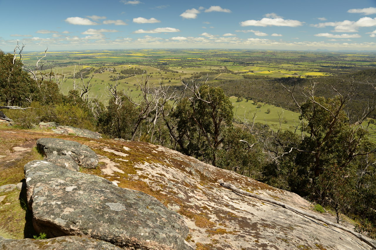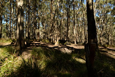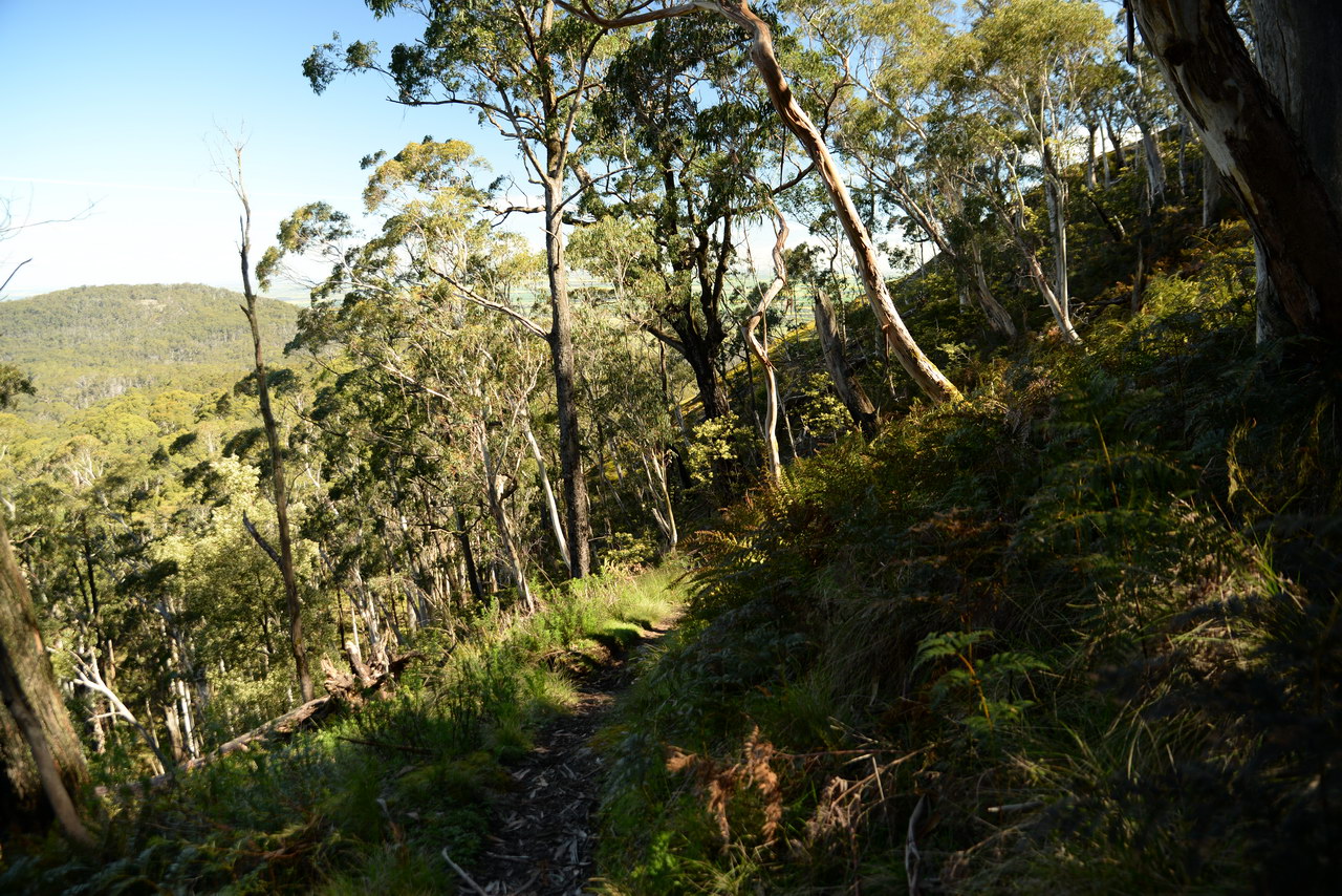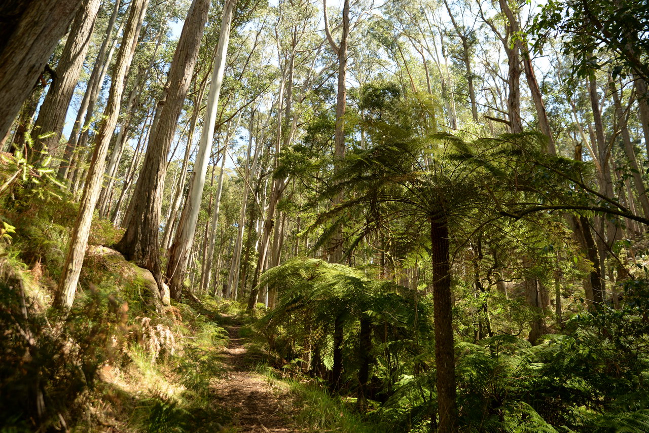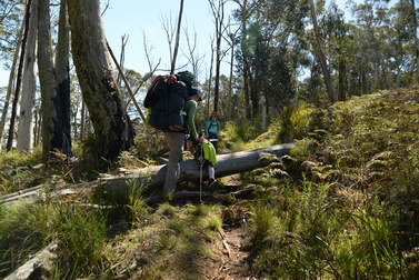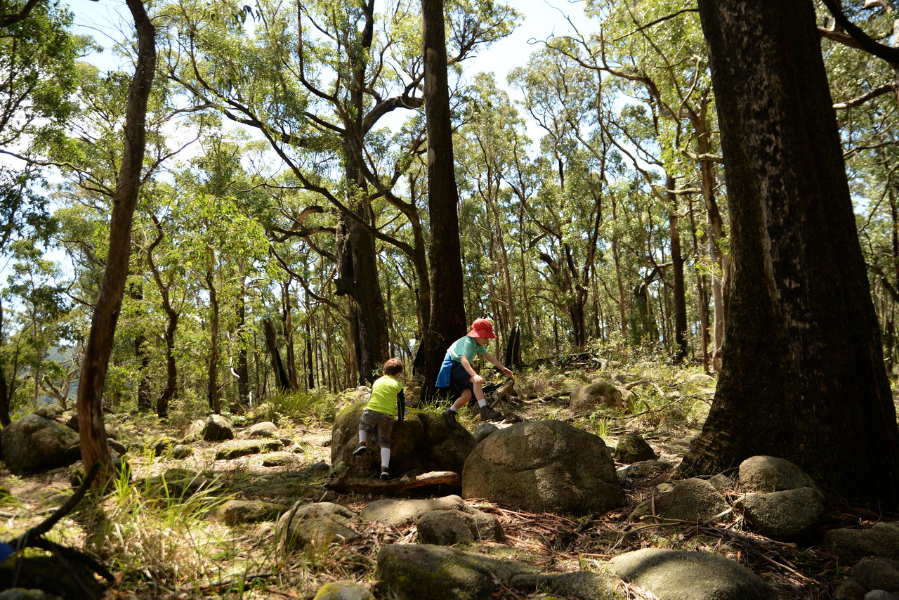 Notes:  Although this walk is classified as a Class 4 walk it is suitable for fit parents with young children. It is 20.6 km long. It starts at the Richards Campground in the Mount Buangor State Park. The walk passes through fern valleys, granite boulders and tall timber with great views of Langi Ghiran and the Grampians. The overnight camp is at the Beeripmo campground. This campground has 10 sites and fires are permitted depending on weather and local fire bans. A water tank and toilets are located at the Beeripmo camp and as this is a "Leave no trace" walk you should take out your rubbish with you.  |