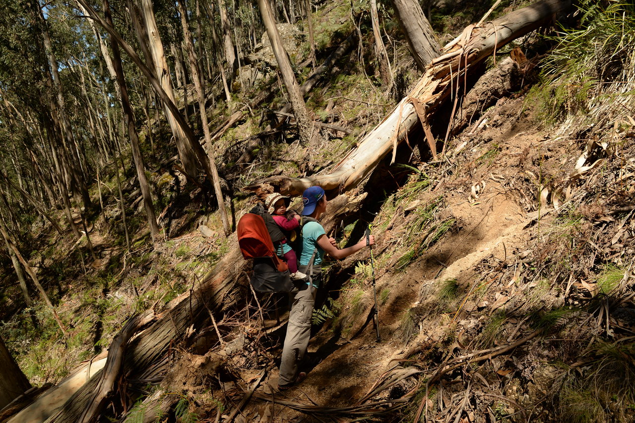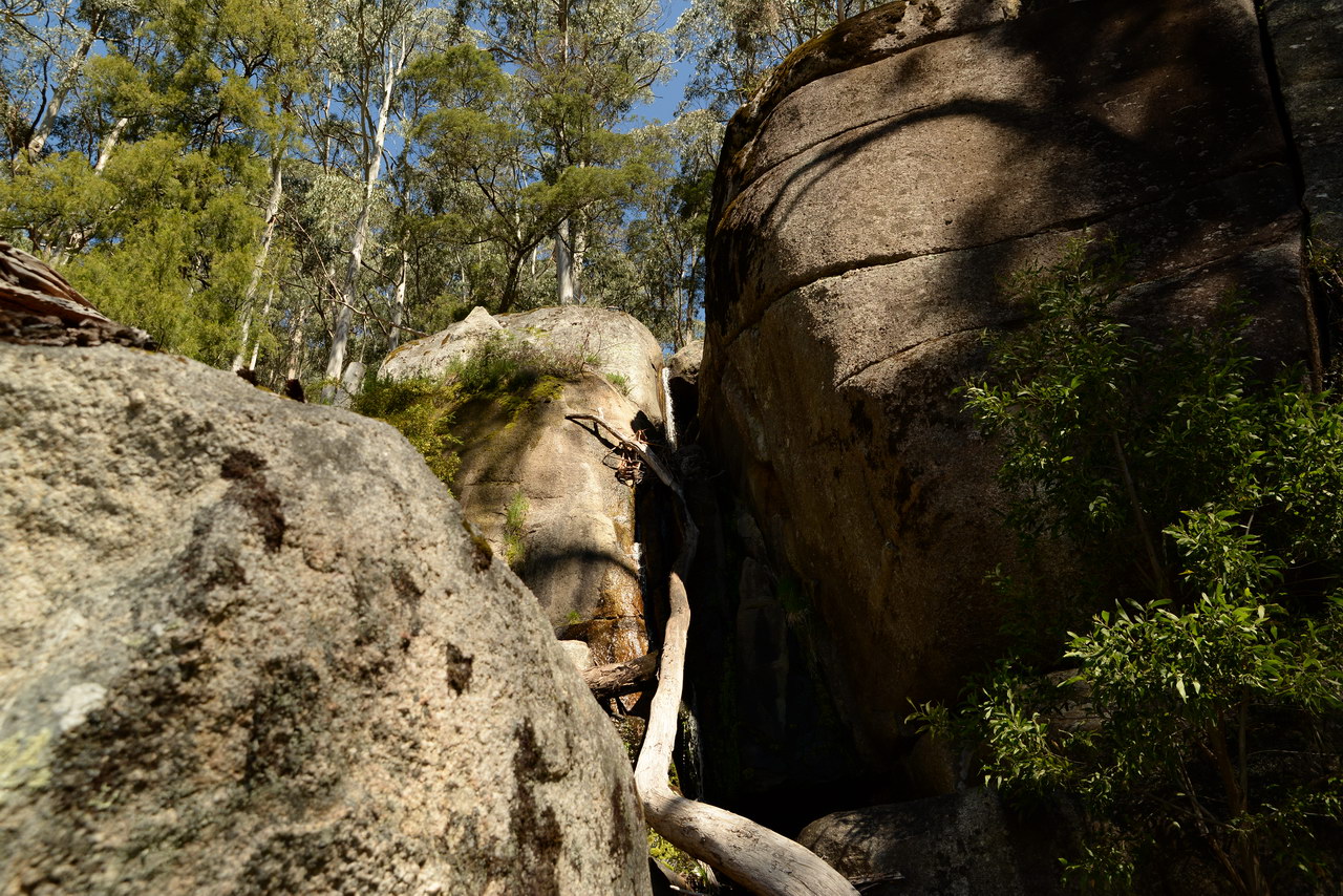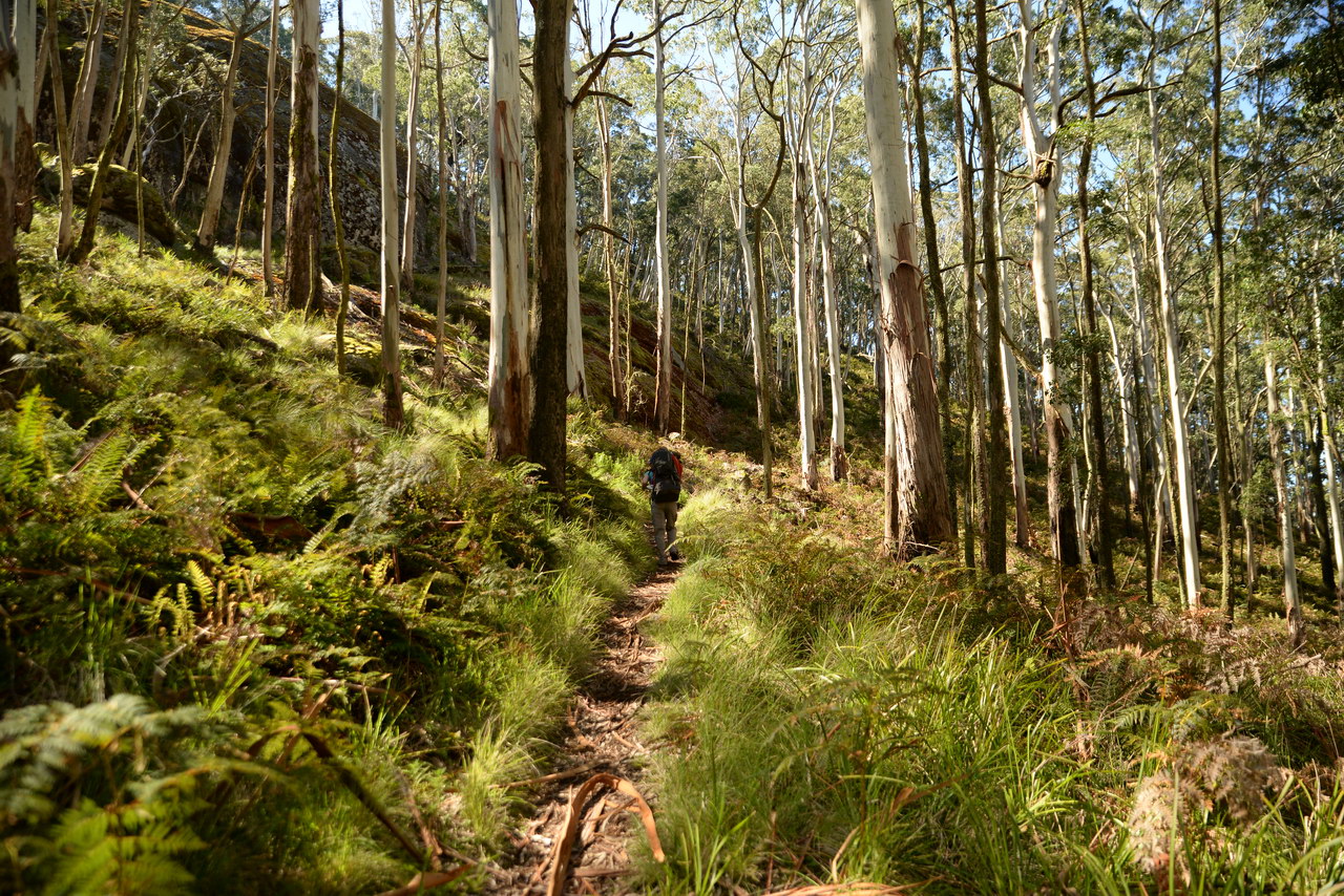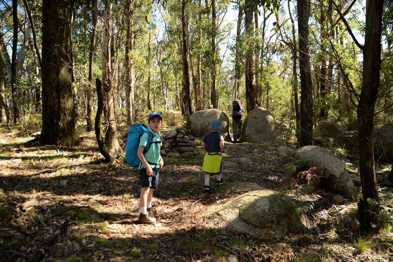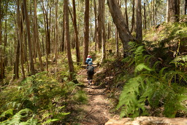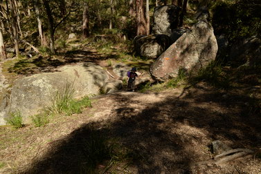 Notes:  Although this walk is classified as a Class 4 walk it is suitable for fit parents with young children. It is 20.6 km long. It starts at the Richards Campground in the Mount Buangor State Park. The walk passes through fern valleys, granite boulders and tall timber with great views of Langi Ghiran and the Grampians. The overnight camp is at the Beeripmo campground. This campground has 10 sites and fires are permitted depending on weather and local fire bans. A water tank and toilets are located at the Beeripmo camp and as this is a "Leave no trace" walk you should take out your rubbish with you.  |