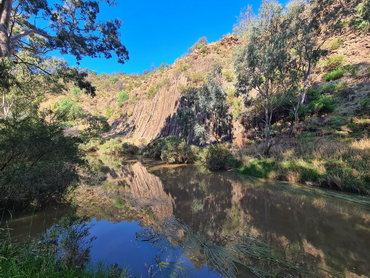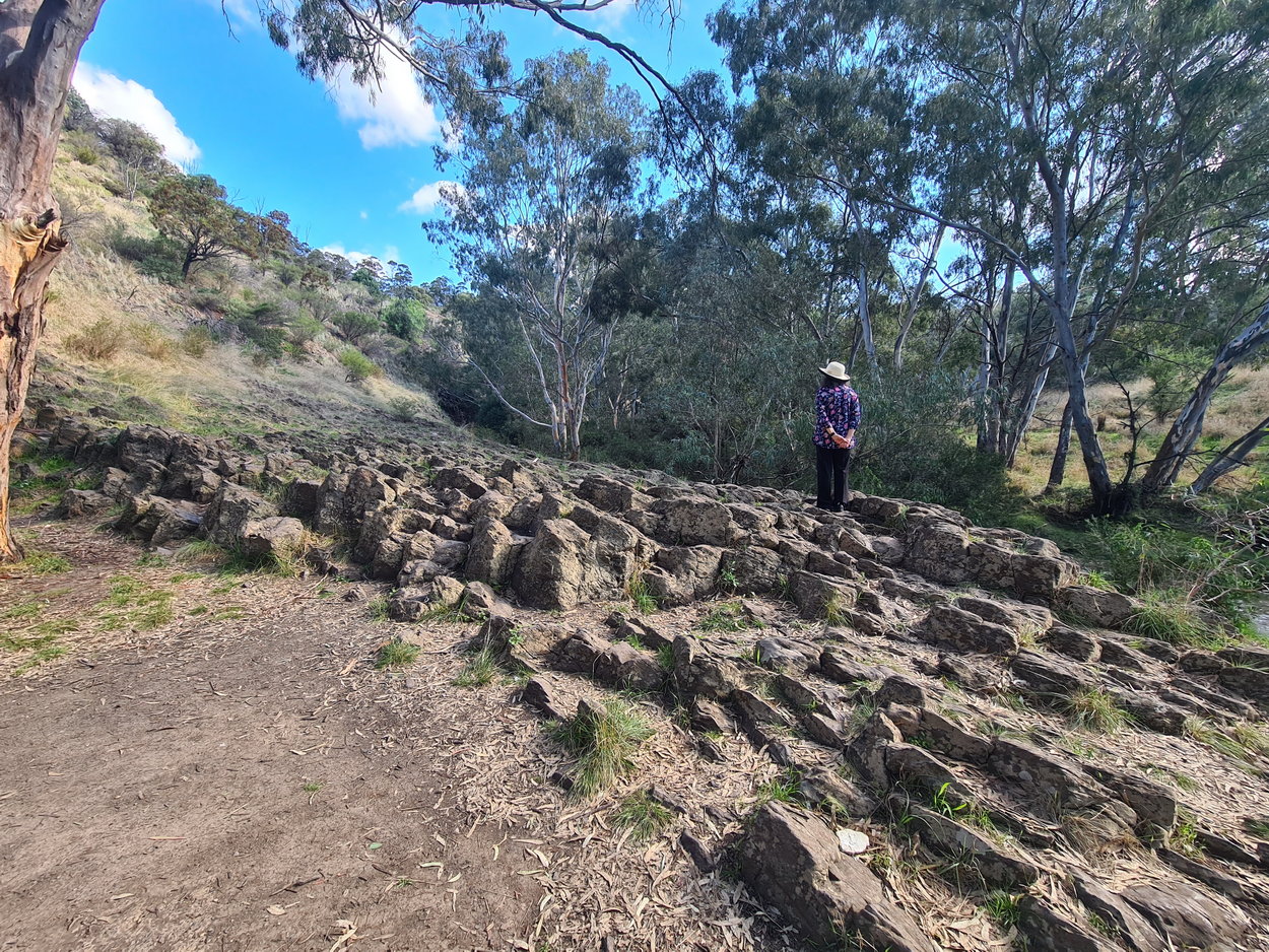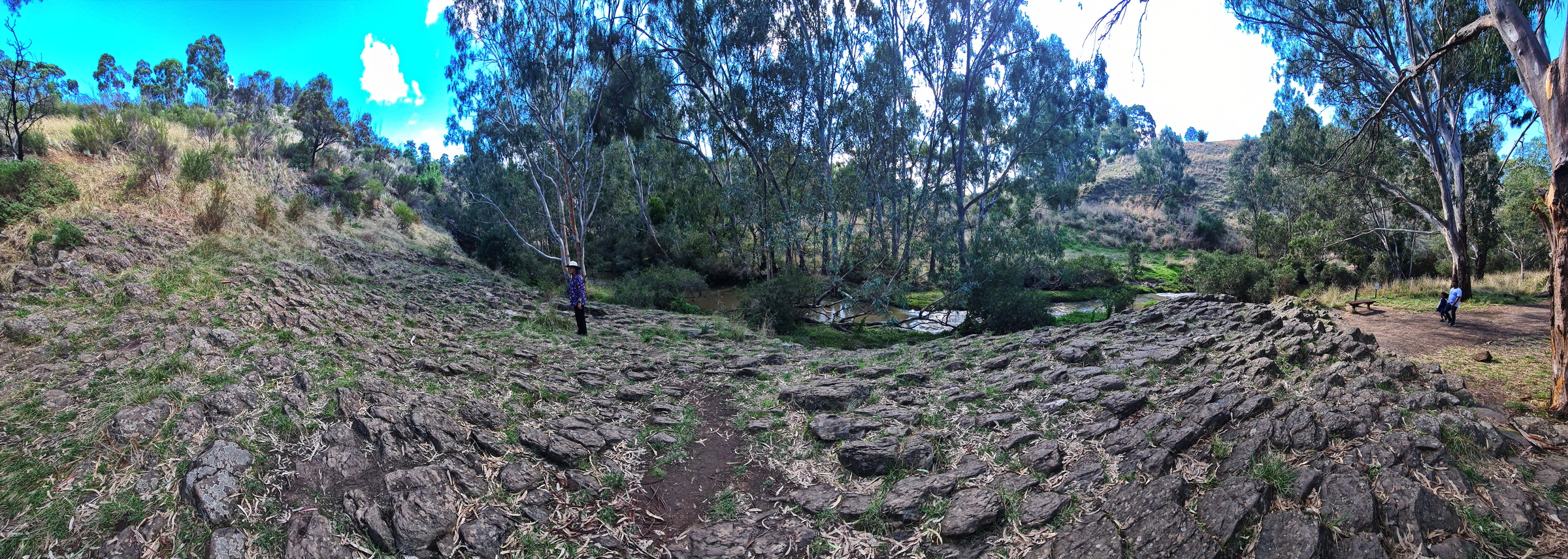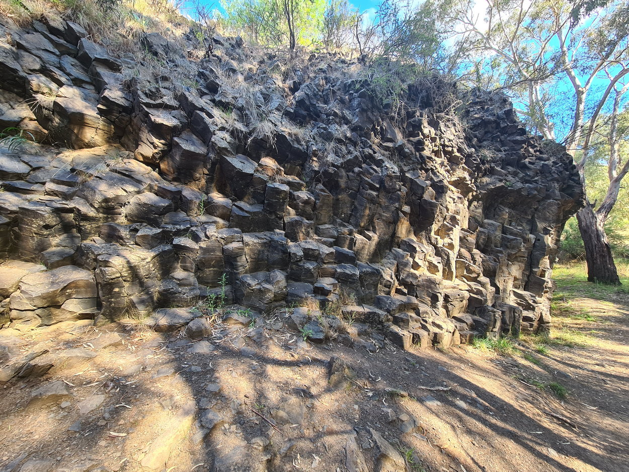 | Organ Pipes National Park Walk:- Covid-19 restrictions have lifted a little and we can leave our small 5/10 km bubble - where to go? This is one of our closest walks and one we had not visited in many years. The car park was fairly full on a bright sunny day when we visited and it was a pleasure to be out and walking again. The hill down to the creek and attractions was still steep, but easy to walk down, not so easy on the way back. We turned left half-way down to visit the Tessellated Pavement first, the followed the creek walk to the end and returned passing the pavement area again before heading onto the Rosette Rock and then on further to the Organ Pipes feature itself, before heading back again past the toilets to the car park at the top of the hill. A great place for a stroll and picnic.  |