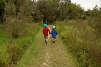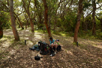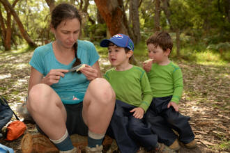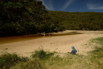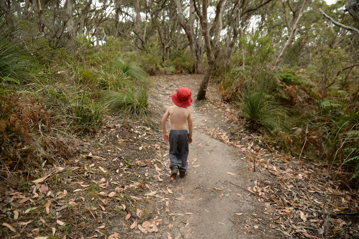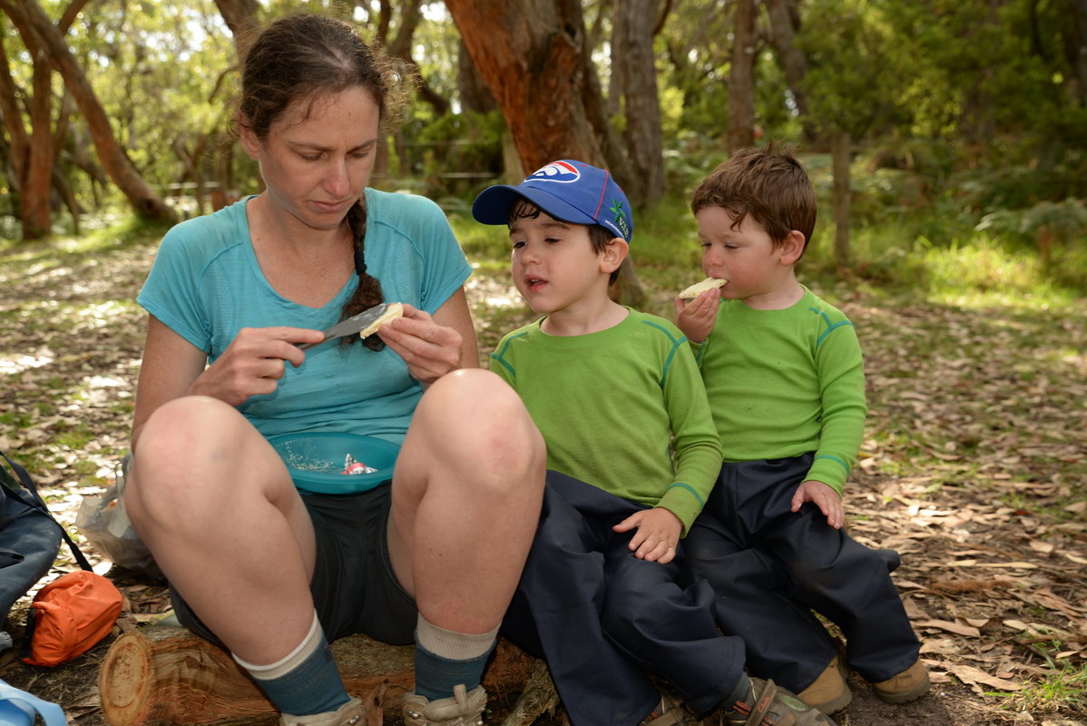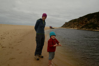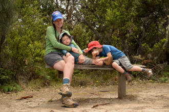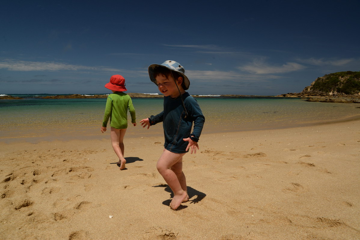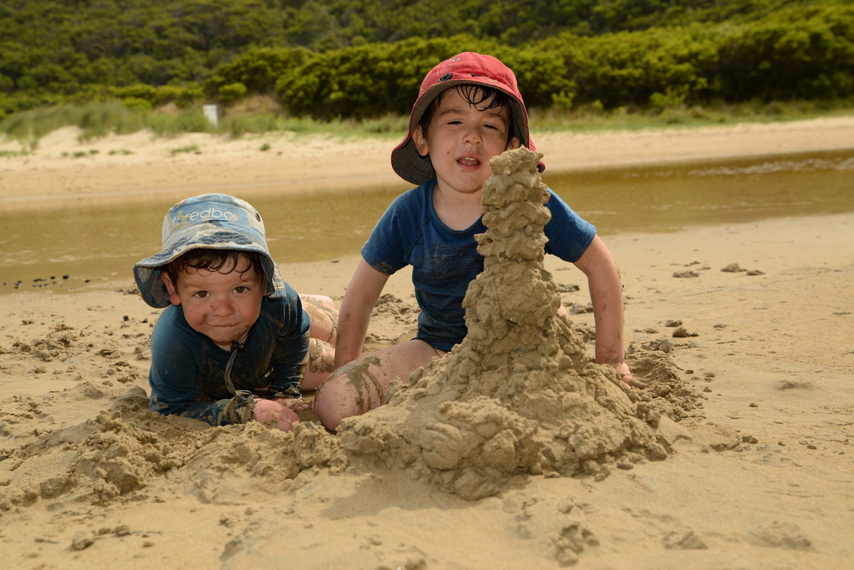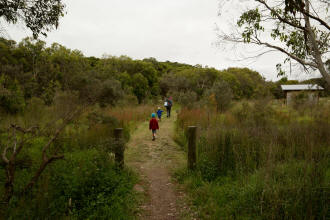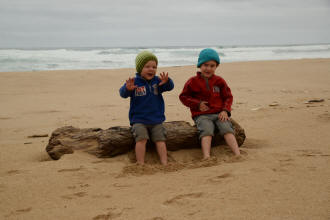 playground. We spotted many koalas during our stay here. Day 5 was a great rest day. We walked to the nearby Glenaire Beach and then attempted to walk back to camp by walking up the Aire River, until this became too difficult and we returned to the track close by. We searched out the local koalas and also toasted our half melted marshmallows. Day 6 was a hot day walking to Cape Otway with the track remaining high above the beach. Even the sandy track was hot! So after 7.5 kms and only 2.5 kms to our next camp it was decided that the boys needed a rest. So Luca went ahead and dropped off his pack and returned ready to carry our eldest Marcus the last bit of the walk. I entertained the kids by adding straw to their hats to keep away flies. By the time Luca was back Marcus was rested and walked to camp unaided. At the Cape Otway camp everyone had turns wearing the latest in eyewear, that someone had left behind. Day 7 was the walk to Parker Hill. To do this we went past the Otway Lighthouse where we stopped so we could all have an ice-cream. A reward to the boys for their great efforts. It was a warm day so when we reached Crayfish Bay we took a break. This was the nicest swimming spot on the whole walk. The remaining walk to Parker Hill was easy. After setting up we walked down to Parker Inlet which was beautiful and had a nice creek flowing across the beach to the sea that was safe for swimming. The water was still too cold for Luca and I. Luca went out at sunset to take his last sunset photos. Day 8 was a quick walk back to Blanket Bay and the car. Camera batteries are now low, so photography must take a back seat for the last day. Thanks to Nana and Grandpa for the car shuffle, Uncle Mike and Nat for their company and farmer Brian for his hospitality. Susan |