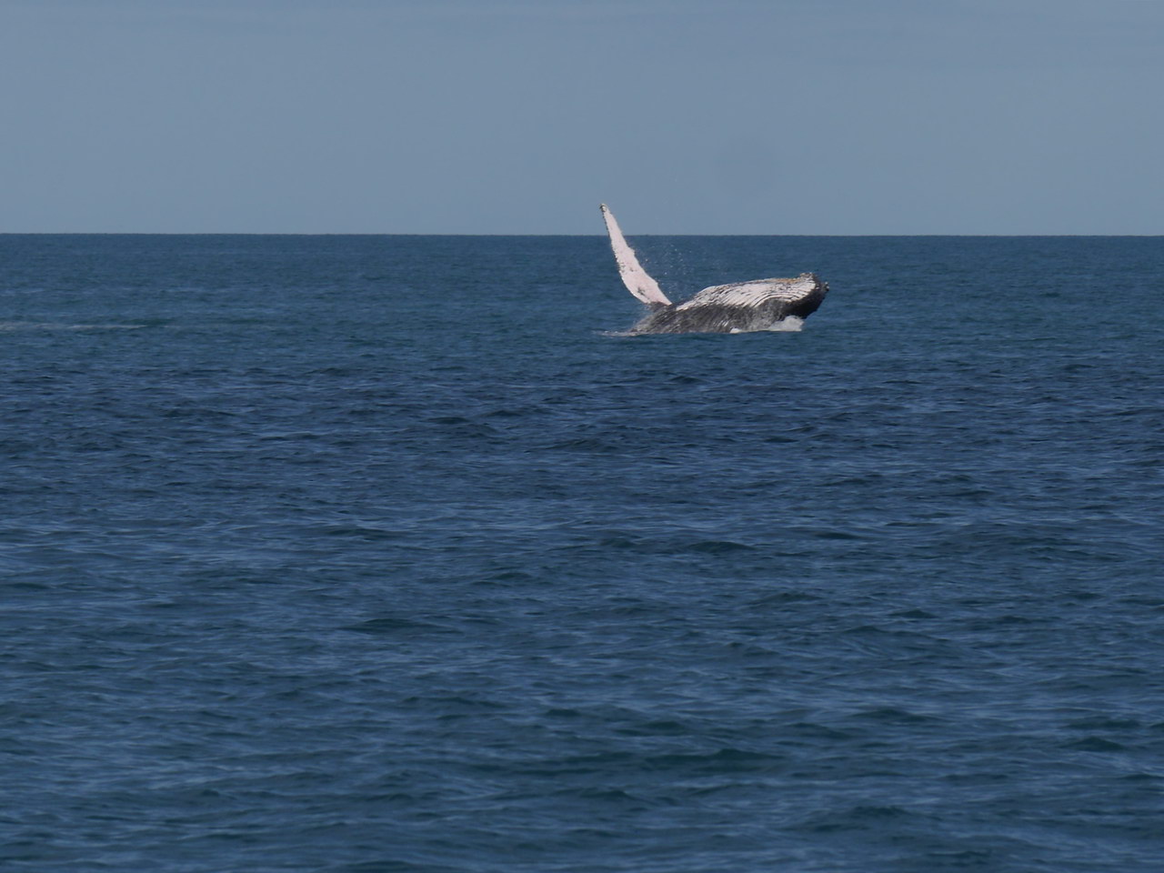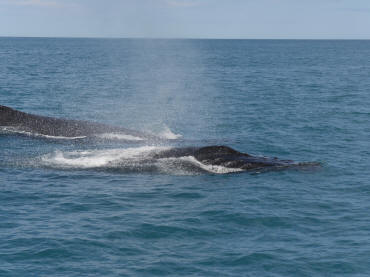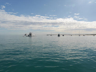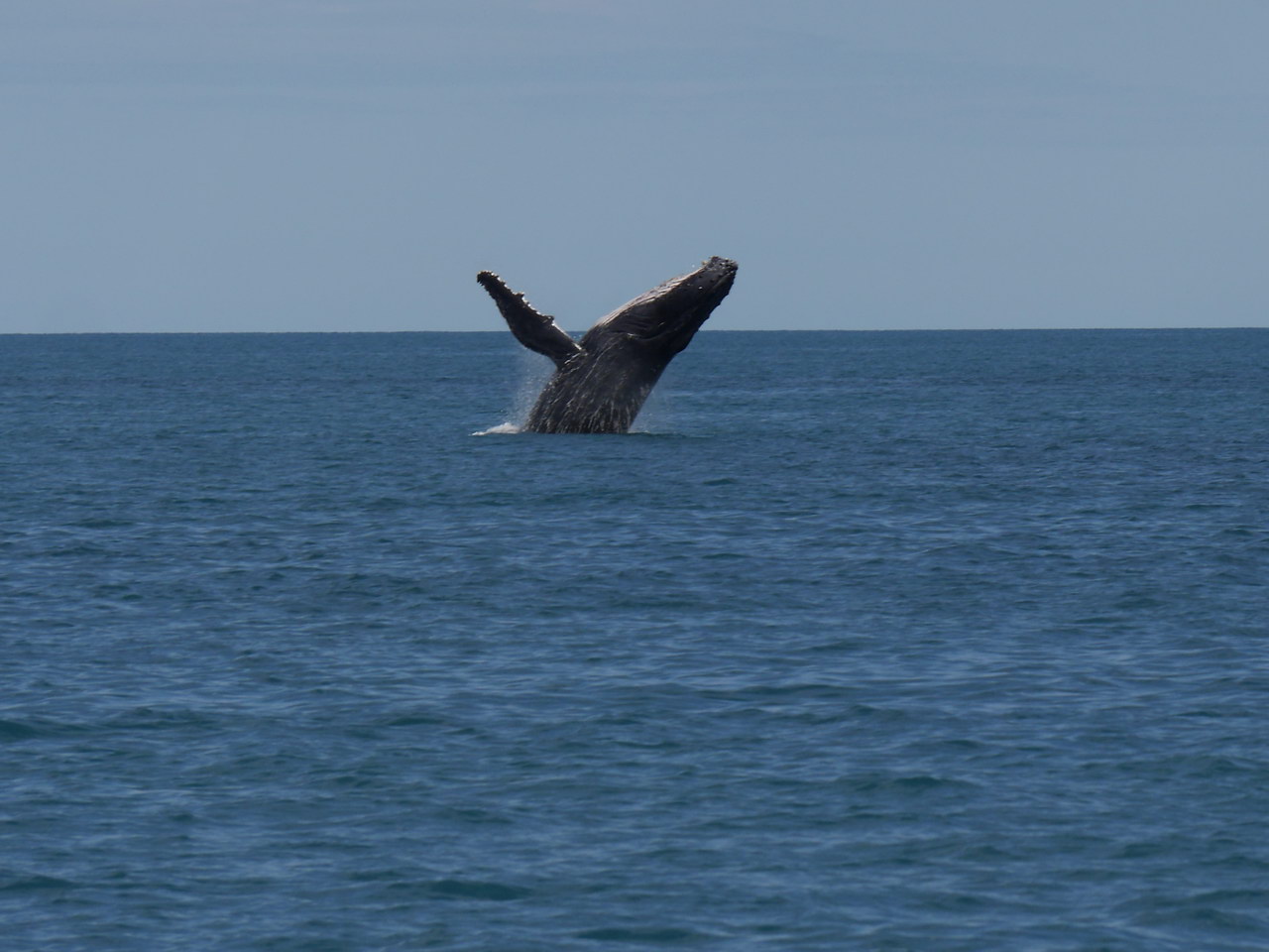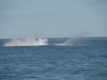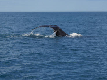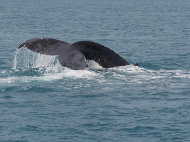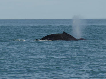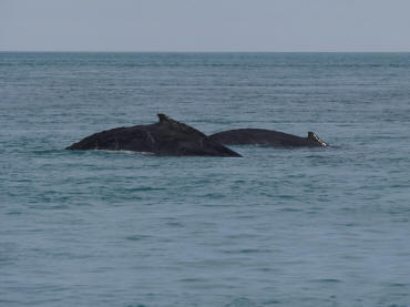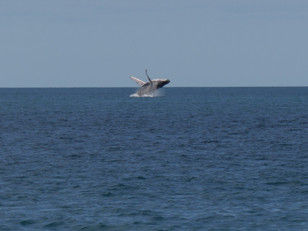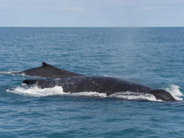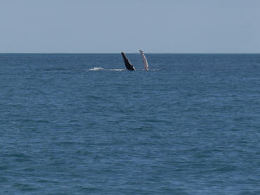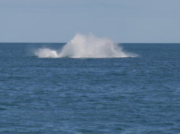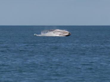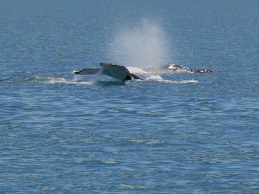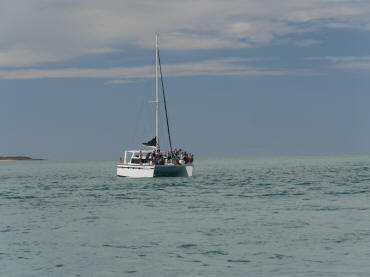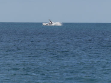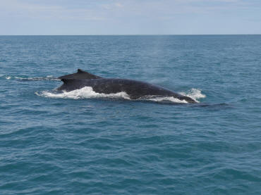 Notes:  The World's largest pod of Humpback Whales, estimated at up to 40,000 mate and give birth in the Indian Ocean around Broome. There is no better place for whale watching, so the brochure told us. As we were in Broome we decided perhaps we should take one of these magical tours. We chose a morning tour which meant an early start to the day. We were soon at the beach ready to be transported out to our yacht. Our transport was an amazing small boat which was equipped with wheels for driving upon the sand. Once on the yacht we were quickly away and soon spotted some whale activity in the distance. Our boat headed that way and soon we were in close proximity to some whales. I say close as you are not allowed to approach within 100m side on and 300m back and front, but if they come to you that's a different matter. Drinks and snacks were passed around during the tour. When the tour finished we headed back to land and again got to shore in that remarkable amphibious boat. A good trip out with loads of whales and some good photos as well.  |