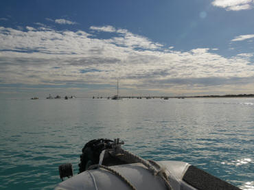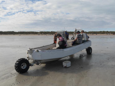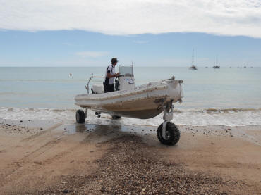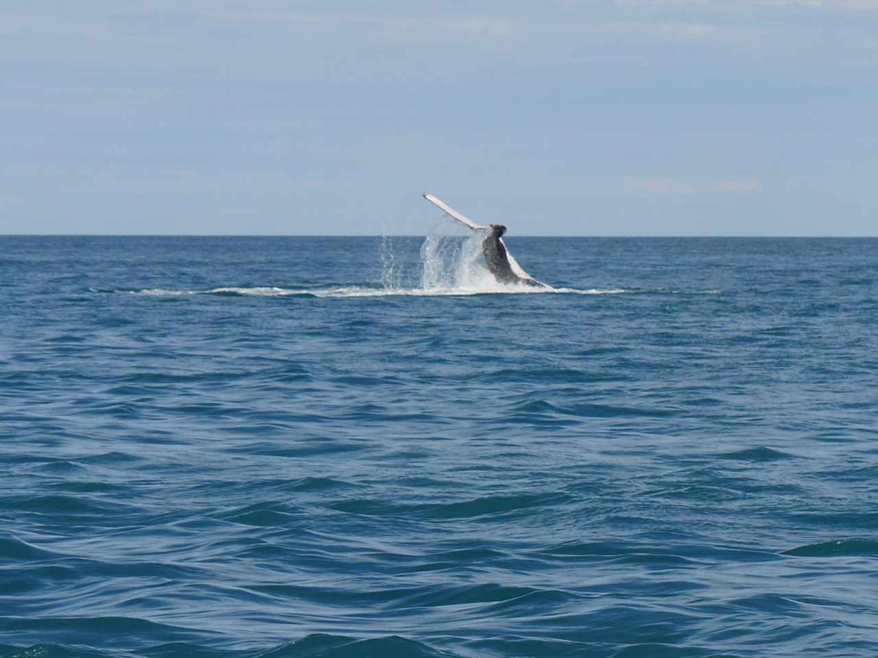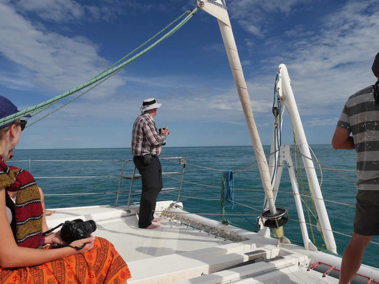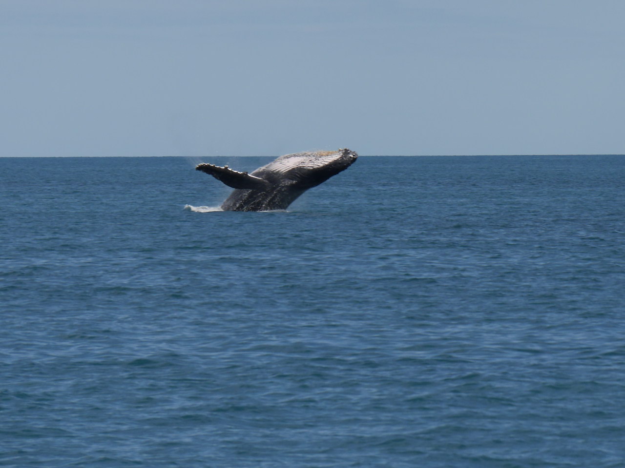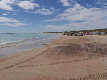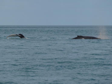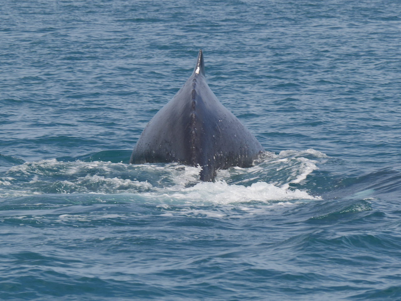 Notes:  The World's largest pod of Humpback Whales, estimated at up to 40,000 mate and give birth in the Indian Ocean around Broome. There is no better place for whale watching, so the brochure told us. As we were in Broome we decided perhaps we should take one of these magical tours. We chose a morning tour which meant an early start to the day. We were soon at the beach ready to be transported out to our yacht. Our transport was an amazing small boat which was equipped with wheels for driving upon the sand. Once on the yacht we were quickly away and soon spotted some whale activity in the distance. Our boat headed that way and soon we were in close proximity to some whales. I say close as you are not allowed to approach within 100m side on and 300m back and front, but if they come to you that's a different matter. Drinks and snacks were passed around during the tour. When the tour finished we headed back to land and again got to shore in that remarkable amphibious boat. A good trip out with loads of whales and some good photos as well.  |