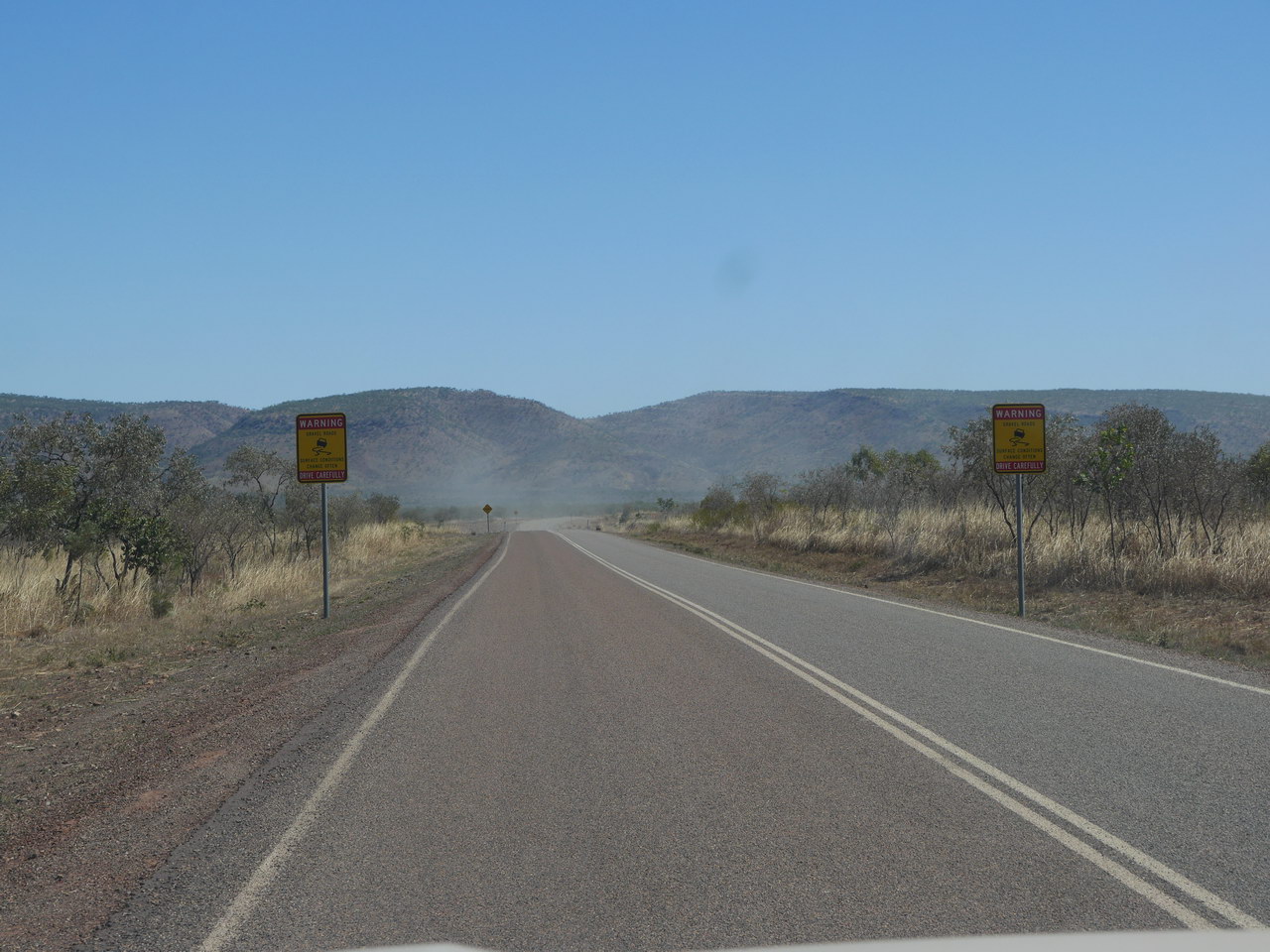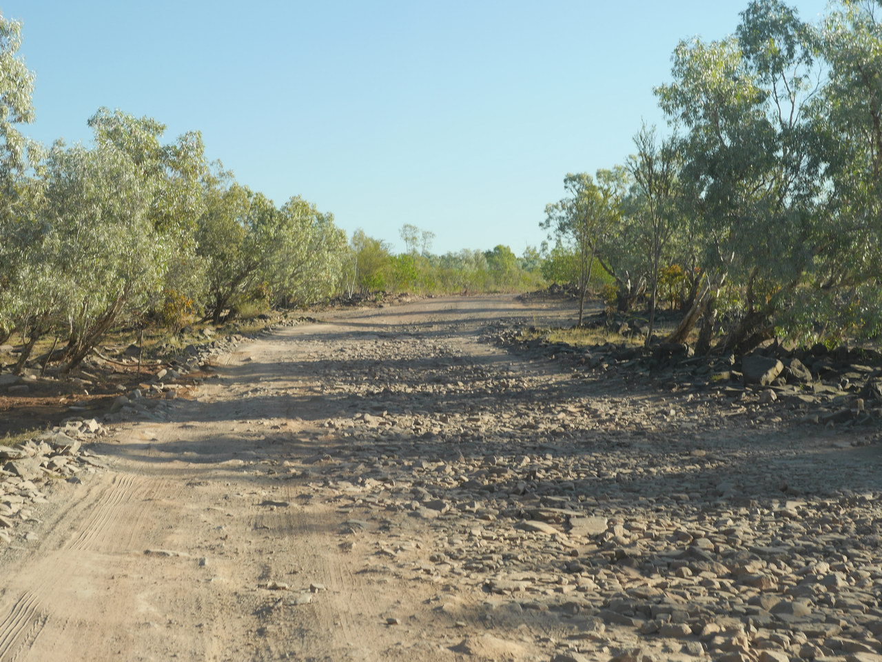 Notes: Today we were leaving El Questro Station and heading off down the Gibb River Road but we had one more walk we thought would be good to do before we left and that was the El Questro Gorge Walk to the boulder at the halfway point. We packed and hitched up our caravan and headed out to the start of the walk but not before dropping off the caravan as there was a long water crossing near the carpark and walk start. The walk is generally rather rocky overall. The start of the walk is along a dry creek bed before you enter the palm tree area where there are a few sections of wooden walkway. The water level is very low at this time of year which makes criss-crossing the creek bed quite easy as you follow the track further into the narrowing gorge. We walked to the halfway point where there is a nice waterhole for a cool dip. The way ahead is blocked by a huge boulder which must be tackled if you are to go further along the track. This was far enough for us and we returned back along the track to our car. Picking up our caravan we headed out of the station and onto the Gibb River Road and turned west crossing the Pentecost River heading for Ellenbrae Station. |