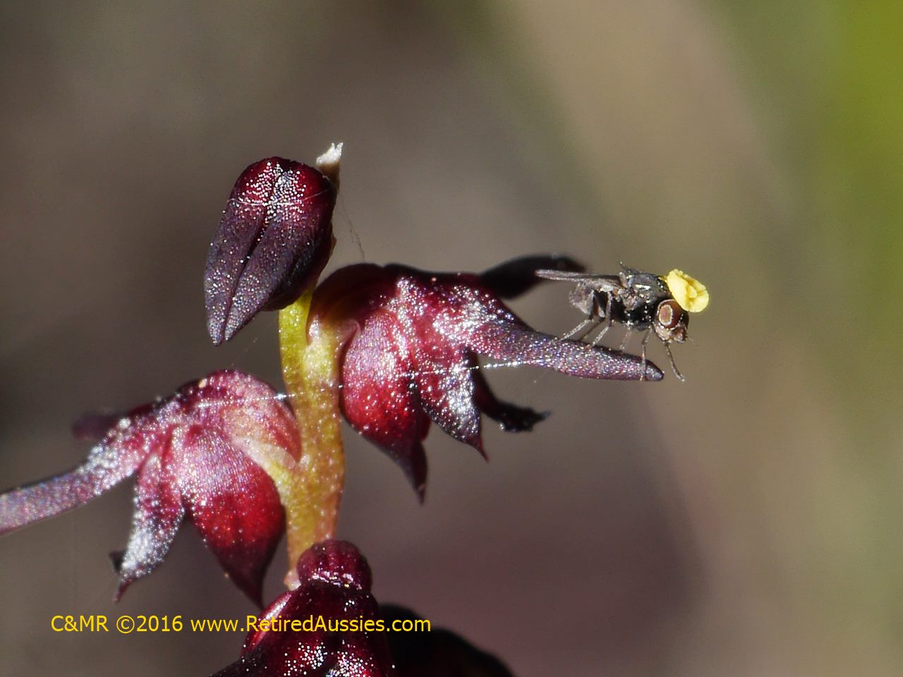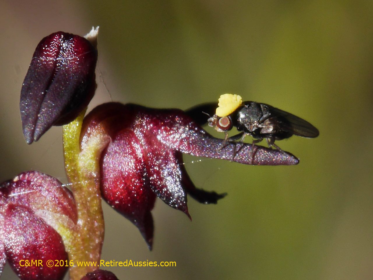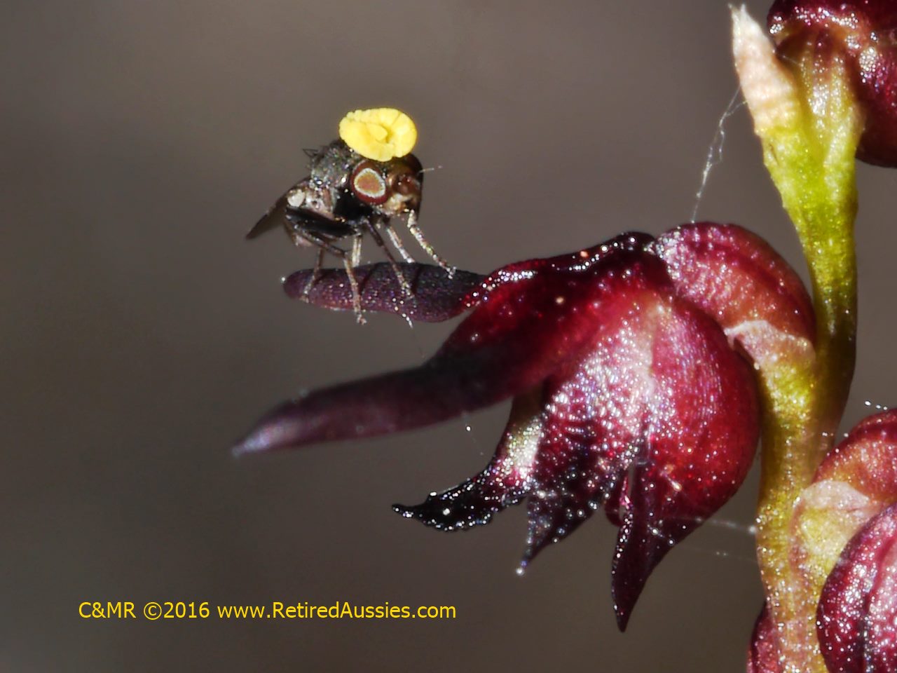 | This fly,which is only around 2 mm long is certainly a pollinator for this orchid. | |