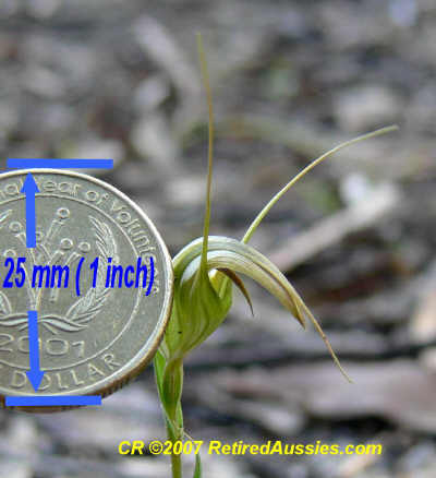 Details (Vic): Flowering: April to May.Size: Flower stem to 20cm, flower - 1, to 15mm long. Rare