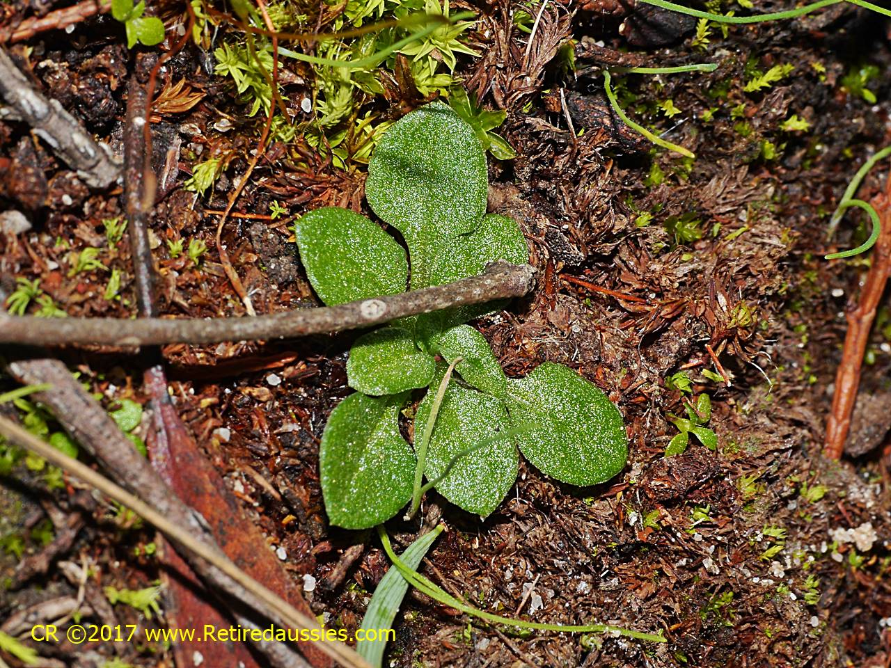| The flower of this plant lacks a basal rosette, the rosettes above are of non-flowering plants | |