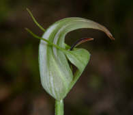 Photographed in Gippsland, Victoria. Details (Vic): Flowering: Flowering October to November. Size: Up to 40cm tall, flowers - one, to 60mm long. Location: Occurs in mountain areas of Victoria, in tall wet forests. Endemic, Vulnerable in Victoria. |