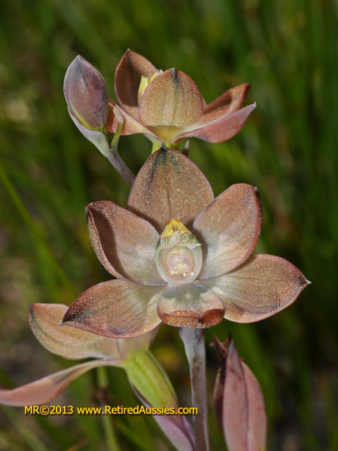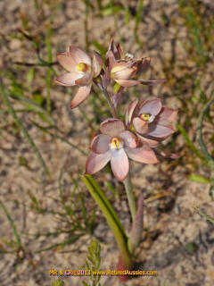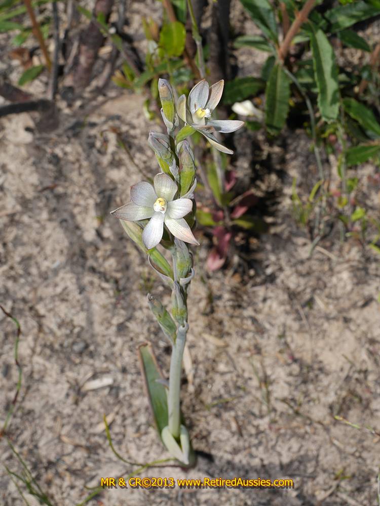 Whole Plant: Easily identified when flowers open, but can look like other Thely's such as the T. aristata or Beard Orchids when closed. Opens easily of hot days. Has a variety of colours, blues, greens, pinks and yellows. |