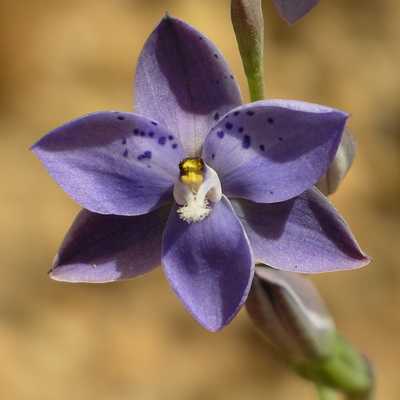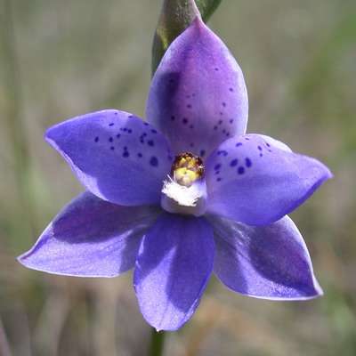 Details (Vic): Flowering: Flowering September to January, mainly October to November. Opens in full sun. Size: Up to 60cm tall, flowers - 2 to 20, to 35mm across. Position: Widespread in Victoria. Favours a wide range of habitats - heathland, heathy woodlands, woodlands and open forests. Well drained sand and clay loams as well as moister peaty soils. Endemic, Secure. Previously: Thelymitra ixioides Sw. var. ixioides |