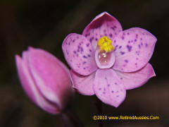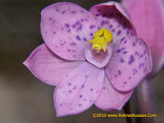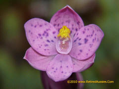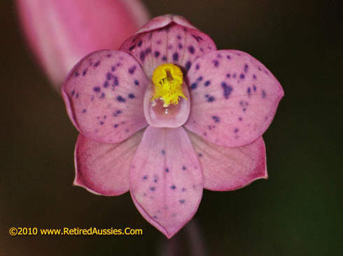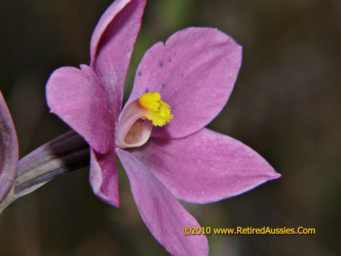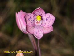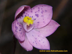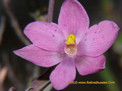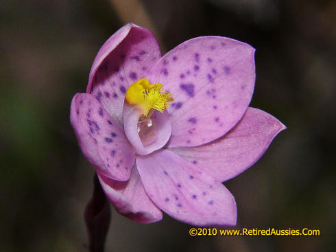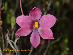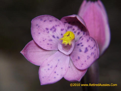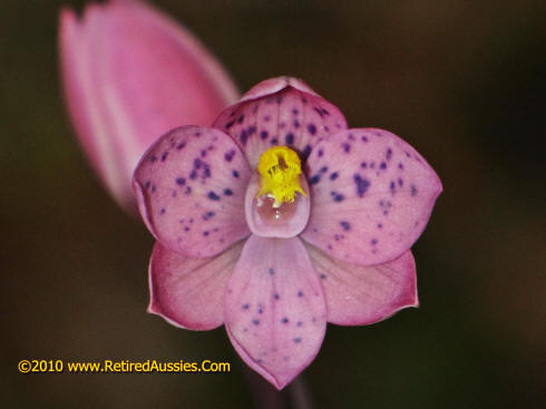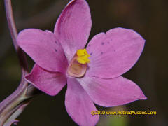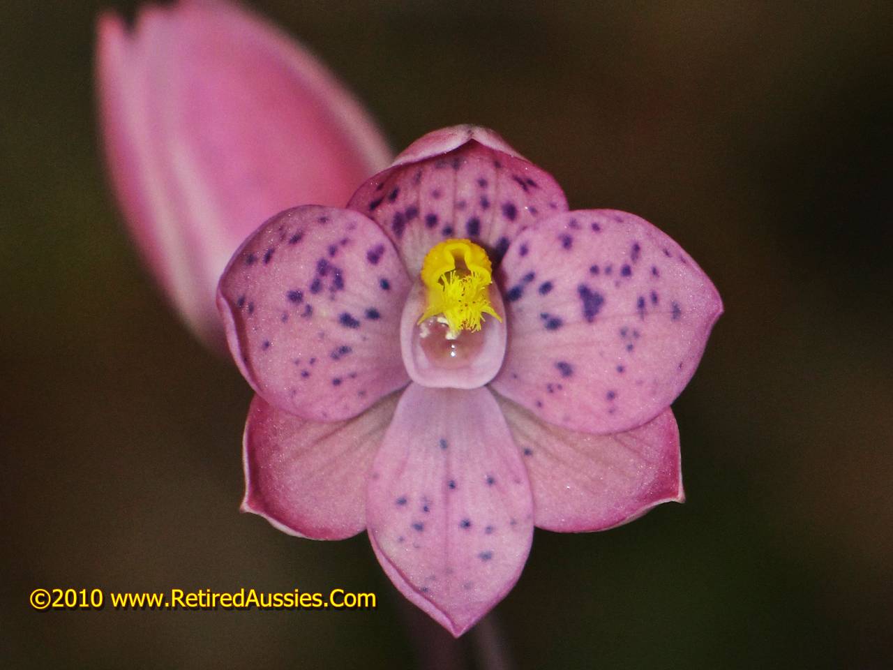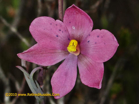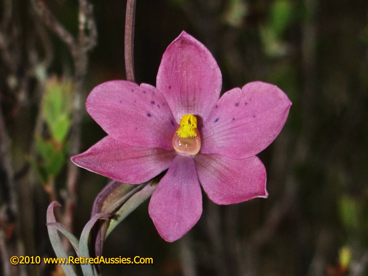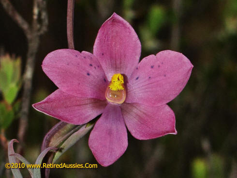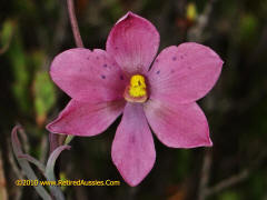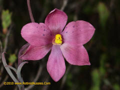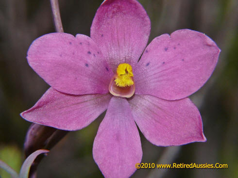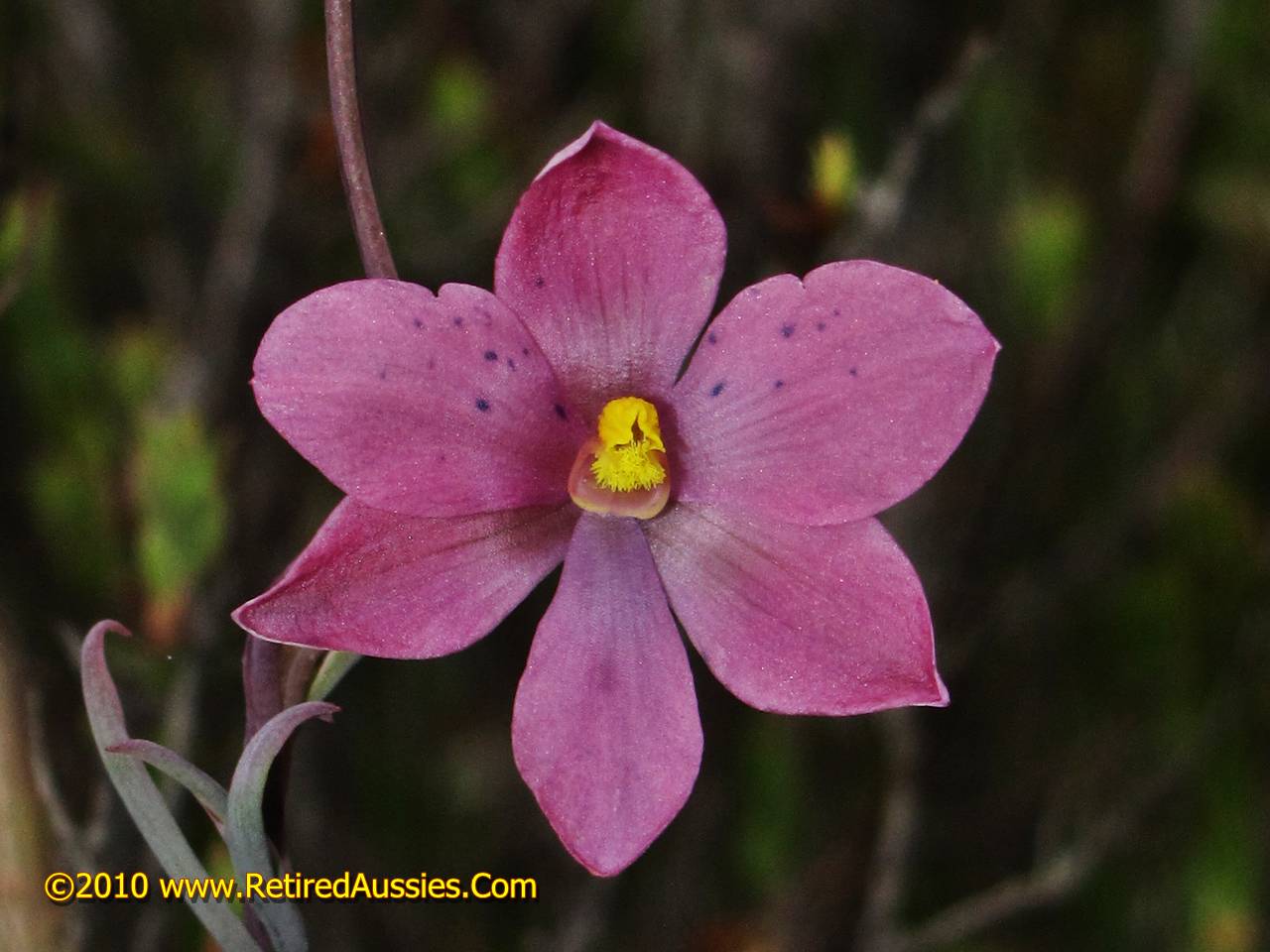 This is a hybrid Sun Orchid. A natural cross between a Thelymitra ixioides and thelymitra carnea.