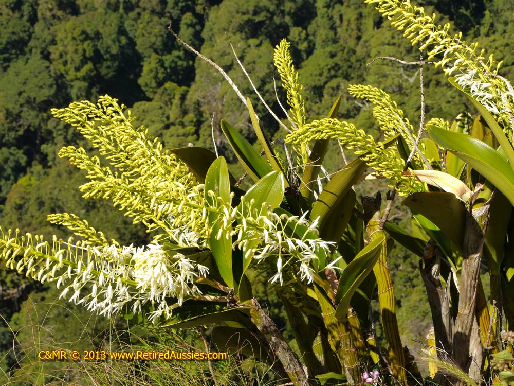 We saw quite a few of these wonderful orchids, but they were always to far away for us to capture close-up photographs. These plants were on the other side of a lookout barrier and with a 100m drop I was not going over for any amount of satisfaction. So I've included some close-ups from NSW above. Link - NSW page |