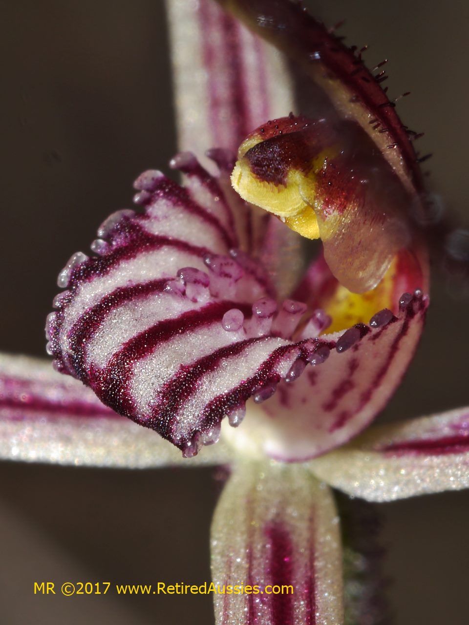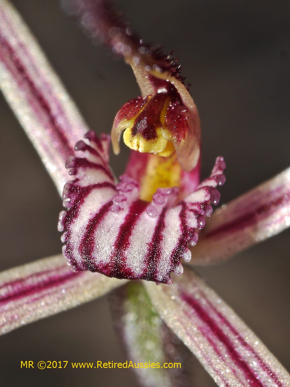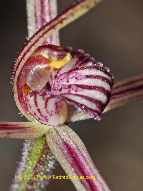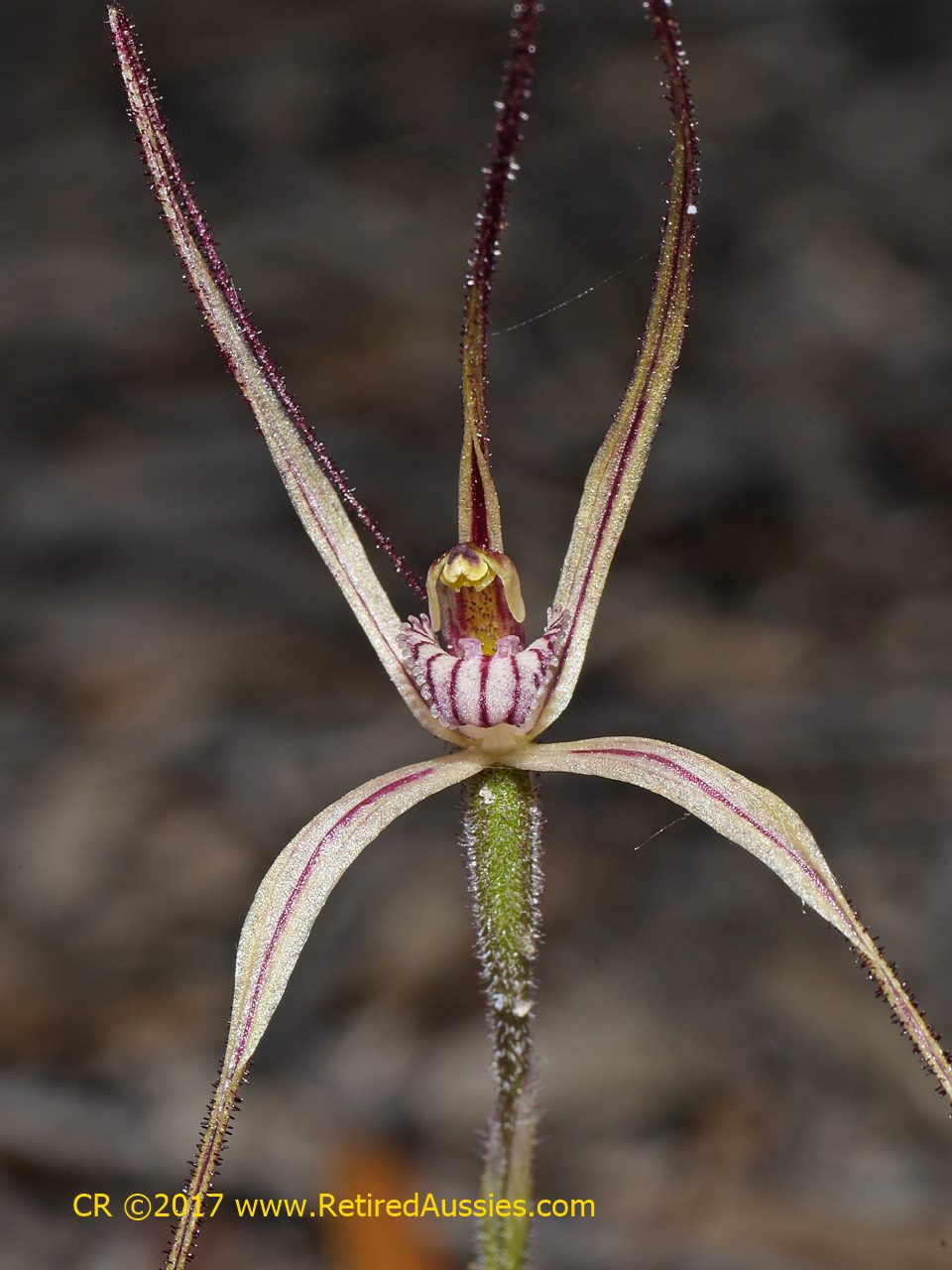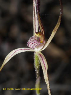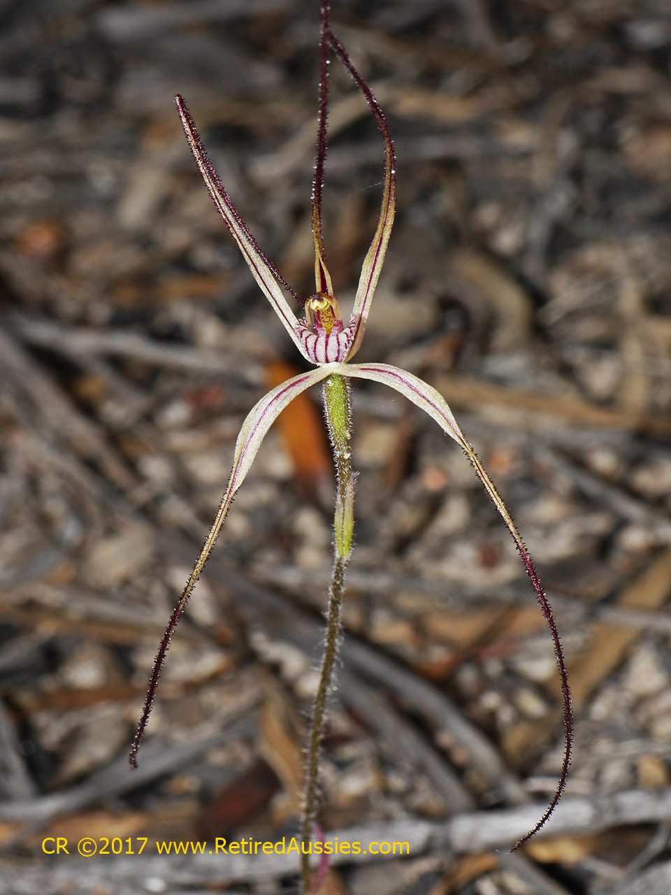 Note: Caladenia x tryphera the Delicate Spider Orchid is a hybrid of Caladenia microchila and Caladenia sigmoidea
